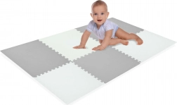 Elegantní pěnová podlaha v neutrálních barvách bílá/šedá ladí s každým interiérem a opticky neruší. Díly se díky puzzle zámkům rychle skládají i rozkládají, takže snadno přizpůsobíte rozměr i tvar prostoru. Materiál EVA je bez ftalátů, formamidu, BPA a PVC, splňuje EN 71 a požadavky REACH a je opatřen označením CE.
