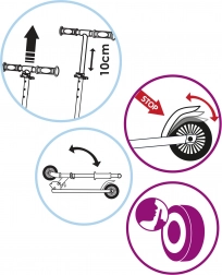 Pro komfort a bezpečí je vybavena nastavitelnou výškou řídítek (pro růst dítěte), měkkými pěnovými gripy, protiskluzovým nášlapem a nožní brzdou na zadním blatníku. Tichá, neklouzavá kolečka zajišťují plynulou jízdu po chodníku. Skvělá volba pro rozvoj rovnováhy, koordinace a jistoty v jízdě.