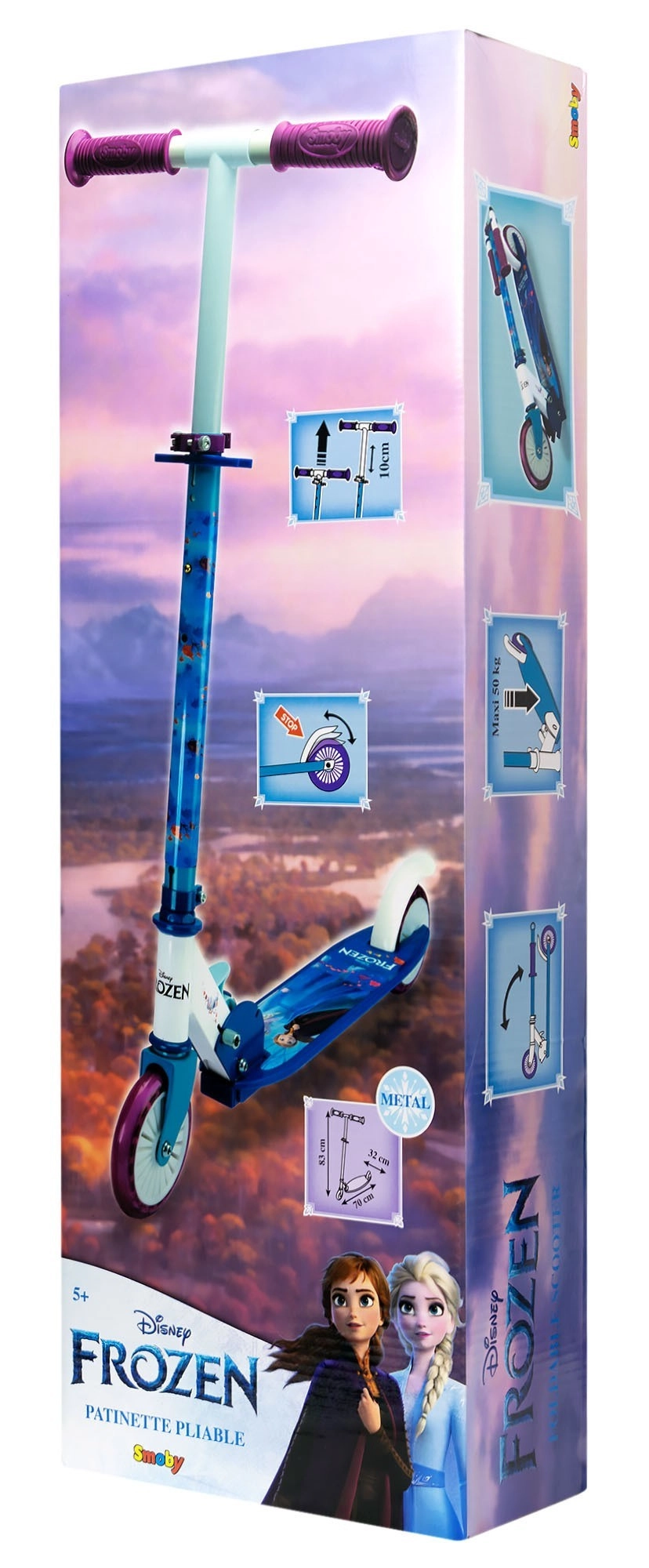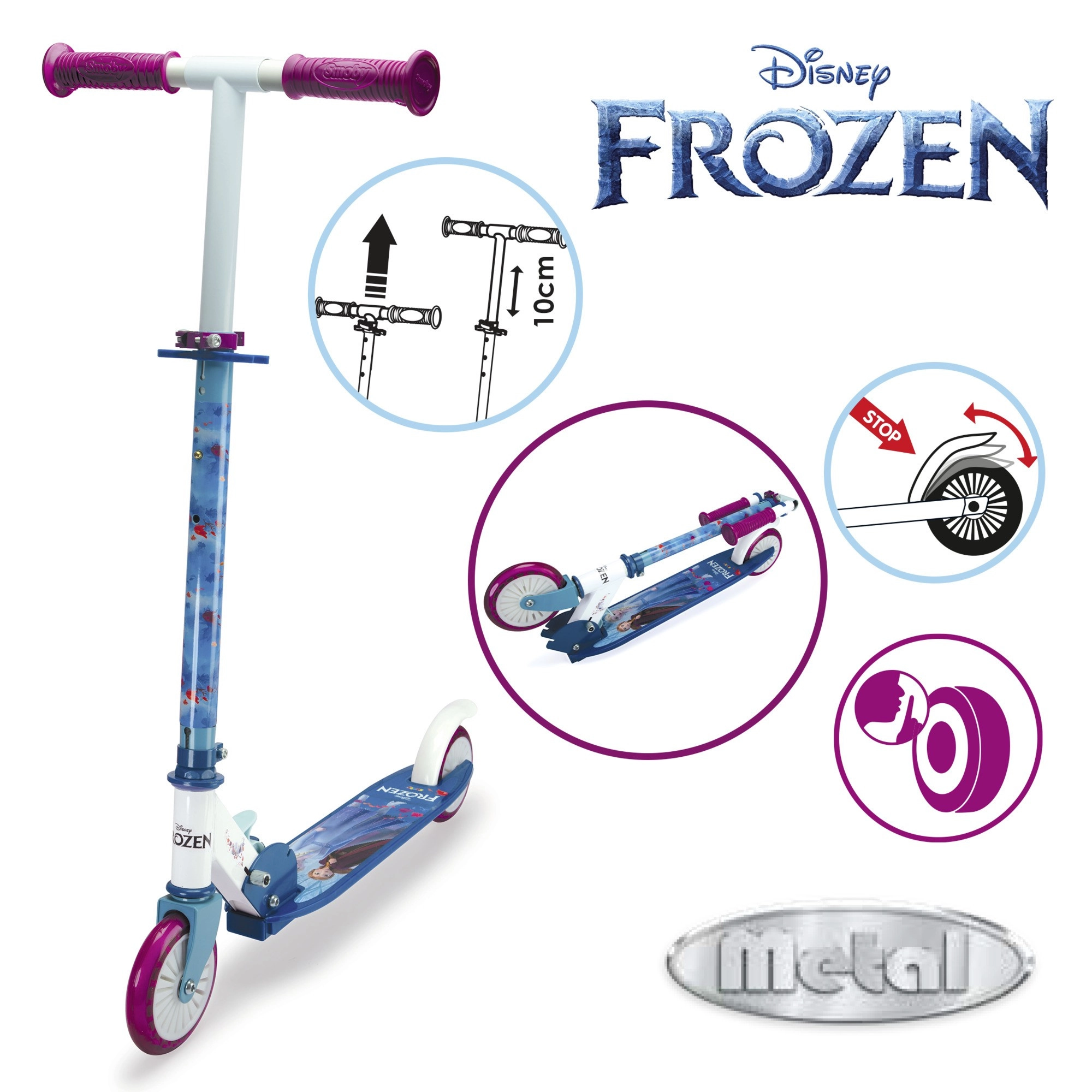 Tato dvoukolová koloběžka s oblíbenými postavami z DISNEY FROZEN potěší malé jezdkyně atraktivním designem a zároveň bezpečnou konstrukcí. Díky hliníkovému rámu je koloběžka velmi lehká a přenosná, přitom dostatečně pevná pro každodenní ježdění. Skládací mechanismus usnadňuje uložení i transport.