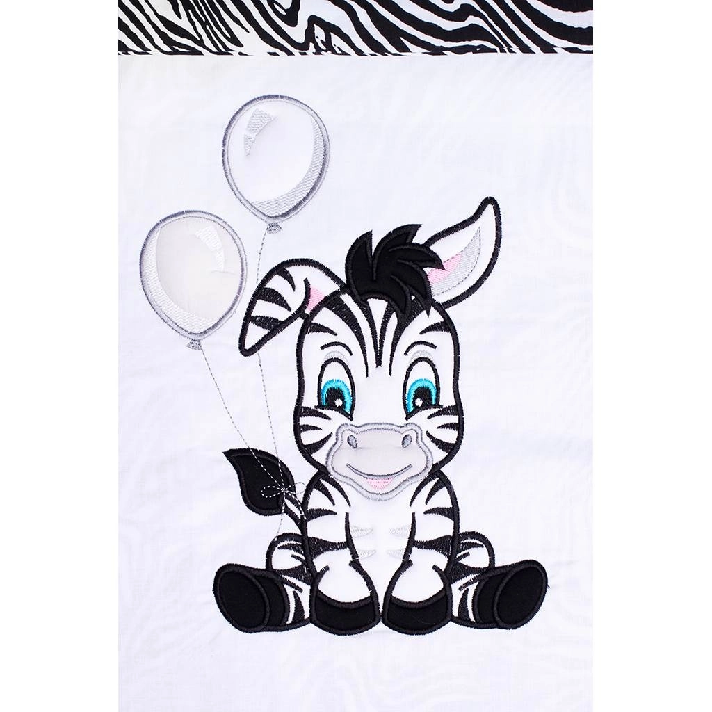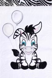 Objevte pohodlí a bezpečí pro váš dětský pokojíček. Povlečení New Baby Zebra v bílo‑černém provedení zaujme veselým motivem zebry a celoplošnými pruhy. Jemná bavlněná tkanina je prodyšná, příjemná na dotek a ideální pro každodenní použití.
