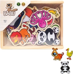 Dřevěné magnetky Zvířata jsou ideální vzdělávací hračkou pro děti. Tato sada obsahuje 20 barevně rozmanitých magnetků, které pomáhají rozvíjet jemnou motoriku a poznávání zvířat.