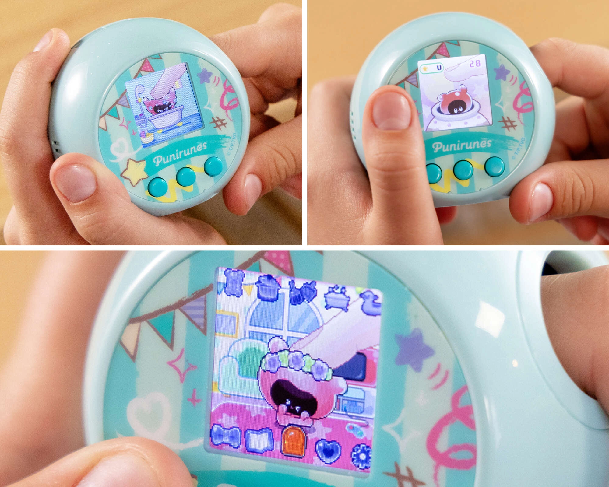 Punirunes spojuje péči o digitálního mazlíčka s jedinečným hmatovým zážitkem. Vložte prst do kapsle, najděte měkké dotykové tlačítko a sledujte, jak se vaše pohyby promítají na barevném LED displeji – jako byste se svého mazlíčka skutečně dotýkali. Díky kompaktnímu provedení si hračku vezmete kamkoli.