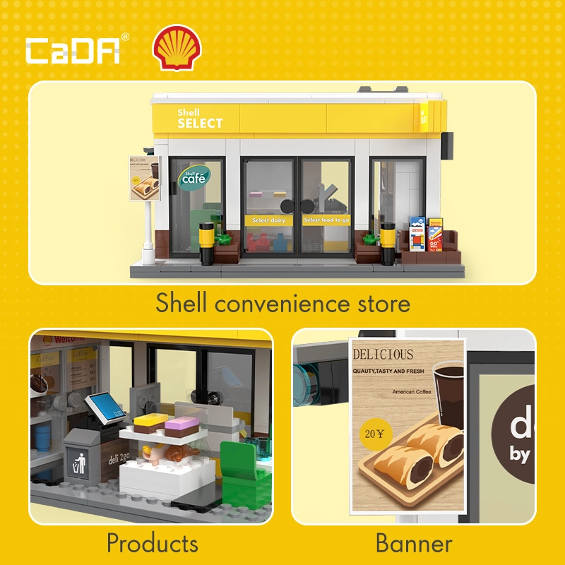 Stavebnice CaDA přináší detailně zpracovaný jednopodlažní mini obchod SHELL s realistickými prvky, jako jsou posuvné/otevírací dveře, vitríny, plakáty a vybavení interiéru. Ideální pro děti od 8 let i dospělé fanoušky stavebnic, kteří milují přesnost a stylový display model.