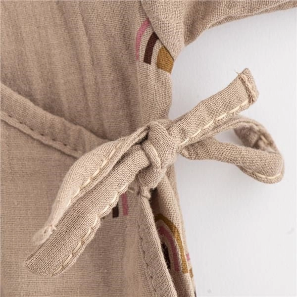 Praktický zavinovací střih s vázáním na boku umožňuje obléknout miminko bez zbytečného přetahování přes hlavičku. Spodní zapínání na cvočky zase zjednodušuje přebalování. Mušelín z čisté bavlny je navíc odolný vůči častému praní a časem ještě více měkne, takže si ho rychle zamilujete.