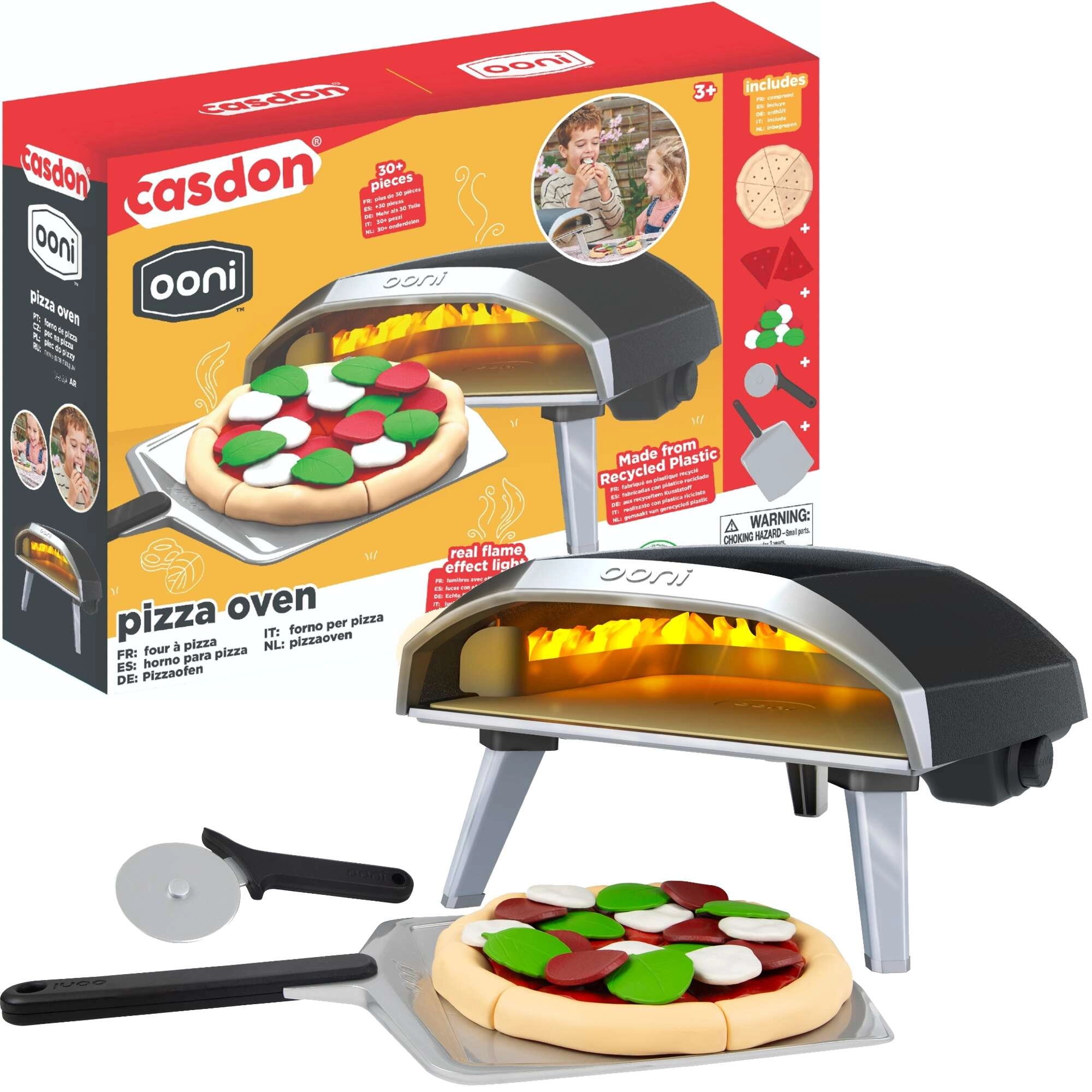Stylová dětská pizza pec v moderním černo‑stříbrném designu přináší autentický zážitek z přípravy pizzy přímo na stole. Děti pizzu složí ze 6 dílků těsta a „omáčky“, ozdobí ji 18 doplňky a pomocí lopatky ji zasunou do pece. Každý kousek drží díky praktickým spojům, takže se s pizzou pohodlně manipuluje a zábava je přirozeně plynulá.