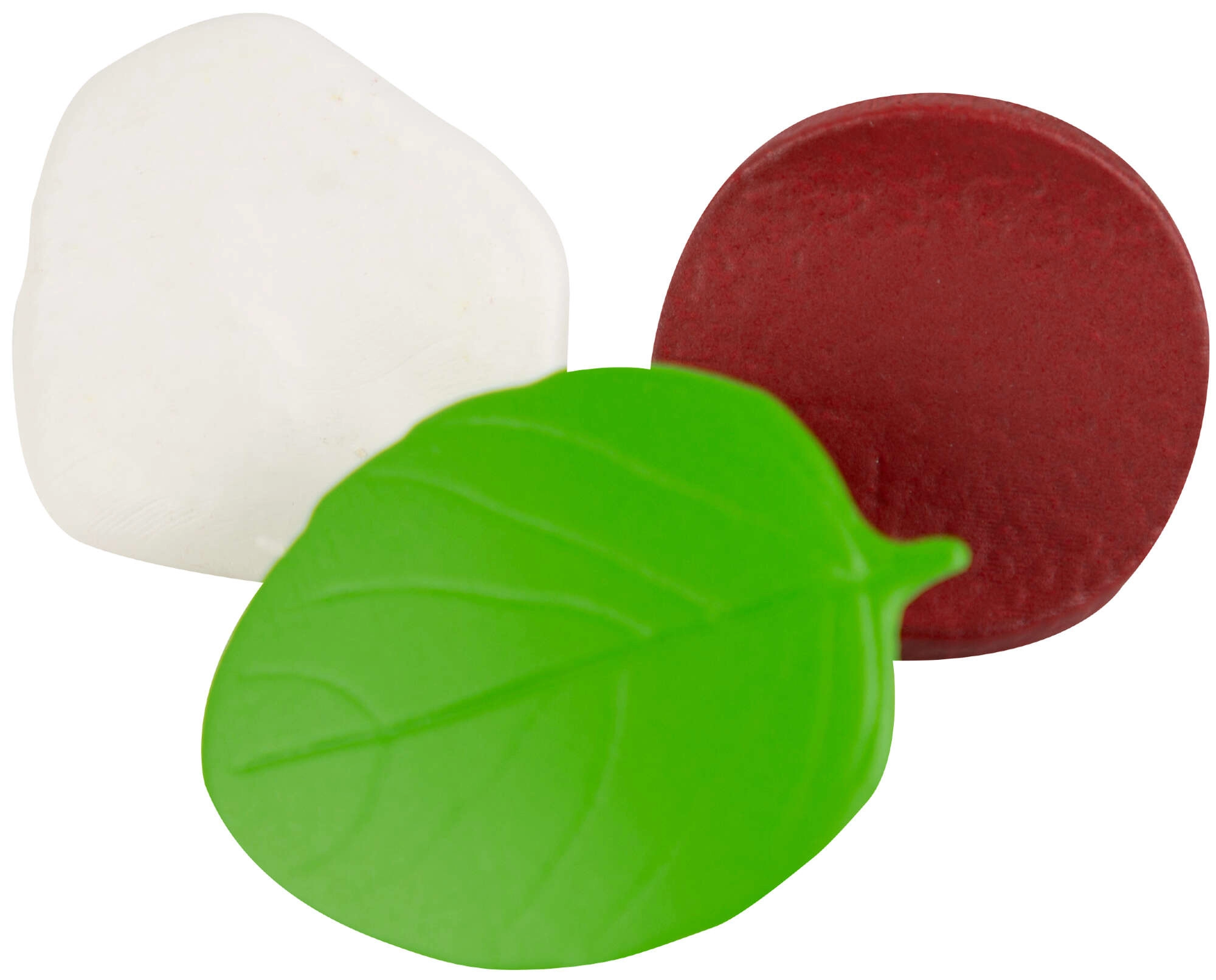 - 18 kusů doplňků (sýry, rajčata, lístky bazalky aj.)