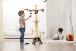 Impozantní výška jeřábu, detailní mřížová konstrukce a kabina operátora přináší dětem skutečný zážitek ze stavby doma i venku.