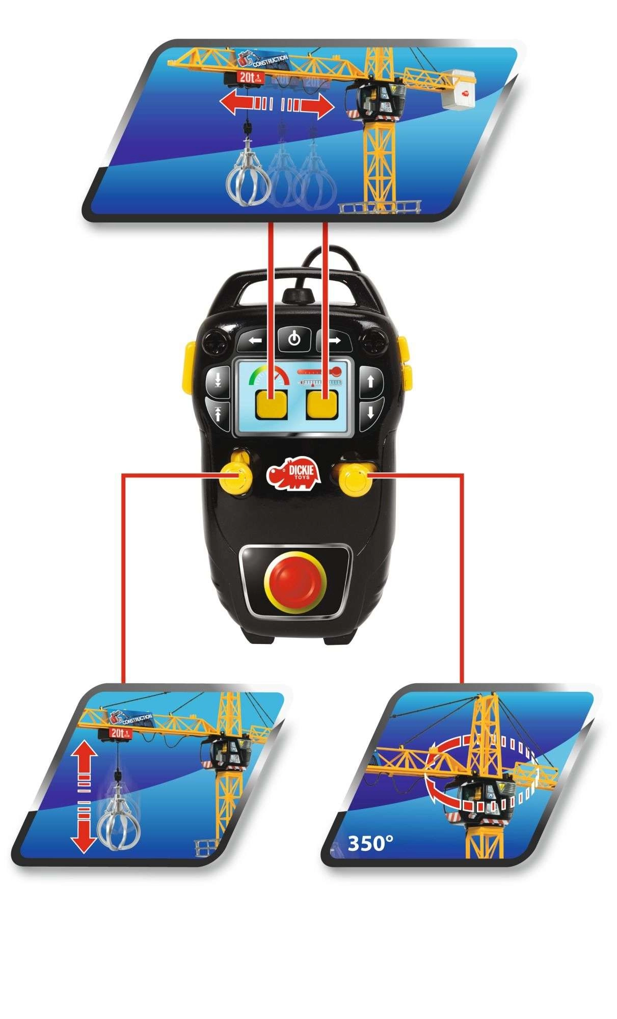 Tento 120cm dětský jeřáb přináší dětem autentickou atmosféru stavby. Díky kabelovému ovládání mohou malí „operátoři“ otáčet ramenem o 360°, měnit nástavce a bezpečně přenášet drobné předměty na přiložené platformě či pomocí drapáku. Robustní čtyřramenná základna zajišťuje stabilitu během celé hry.