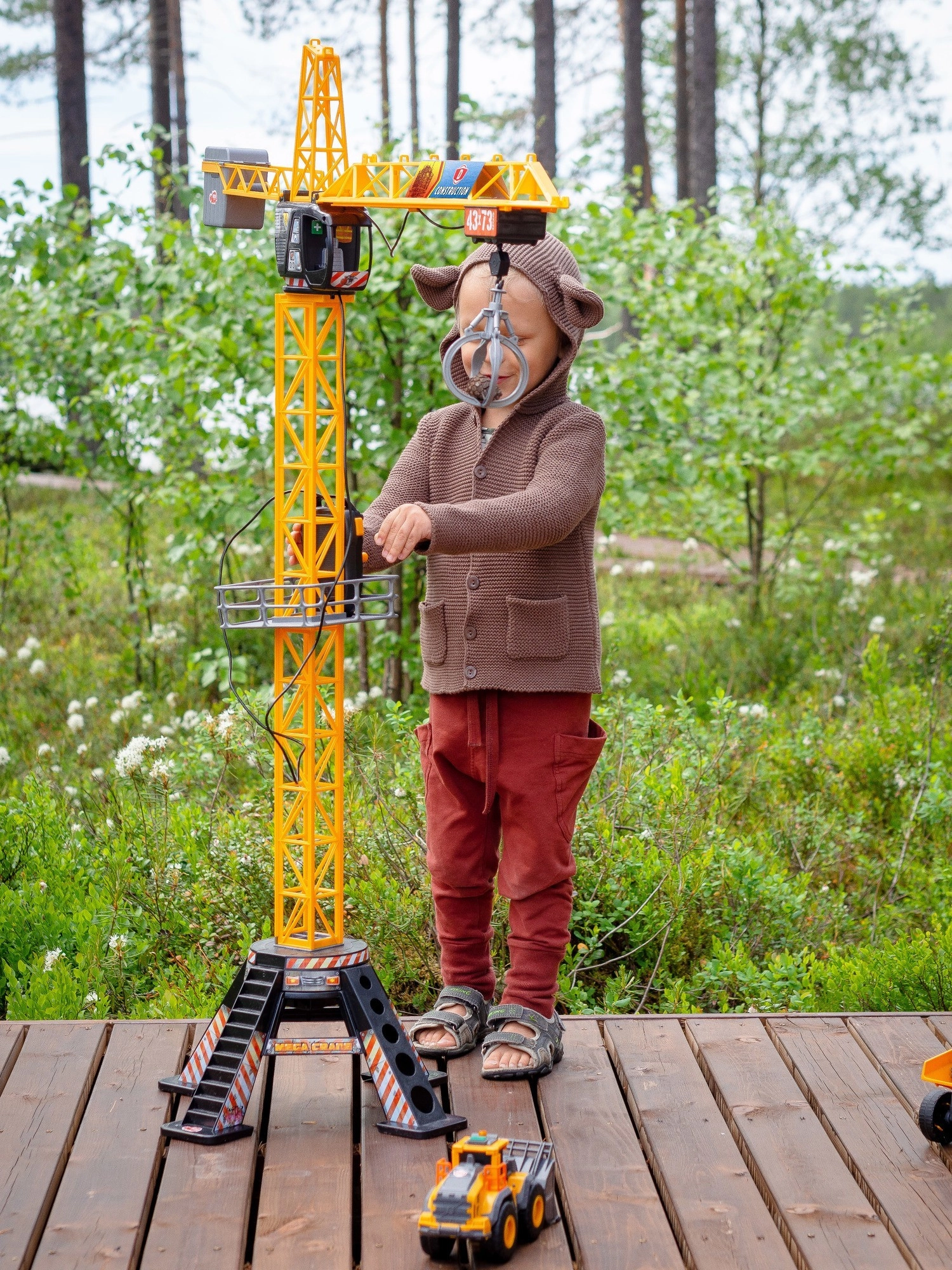 Součástí balení je platforma na náklad a úchopový drapák, které snadno podpoří kreativní a konstruktivní hru, rozvoj jemné motoriky a představivosti. V horní části je umístěna kabina pro figurku (figurka není součástí balení) pro ještě realističtější zážitky.