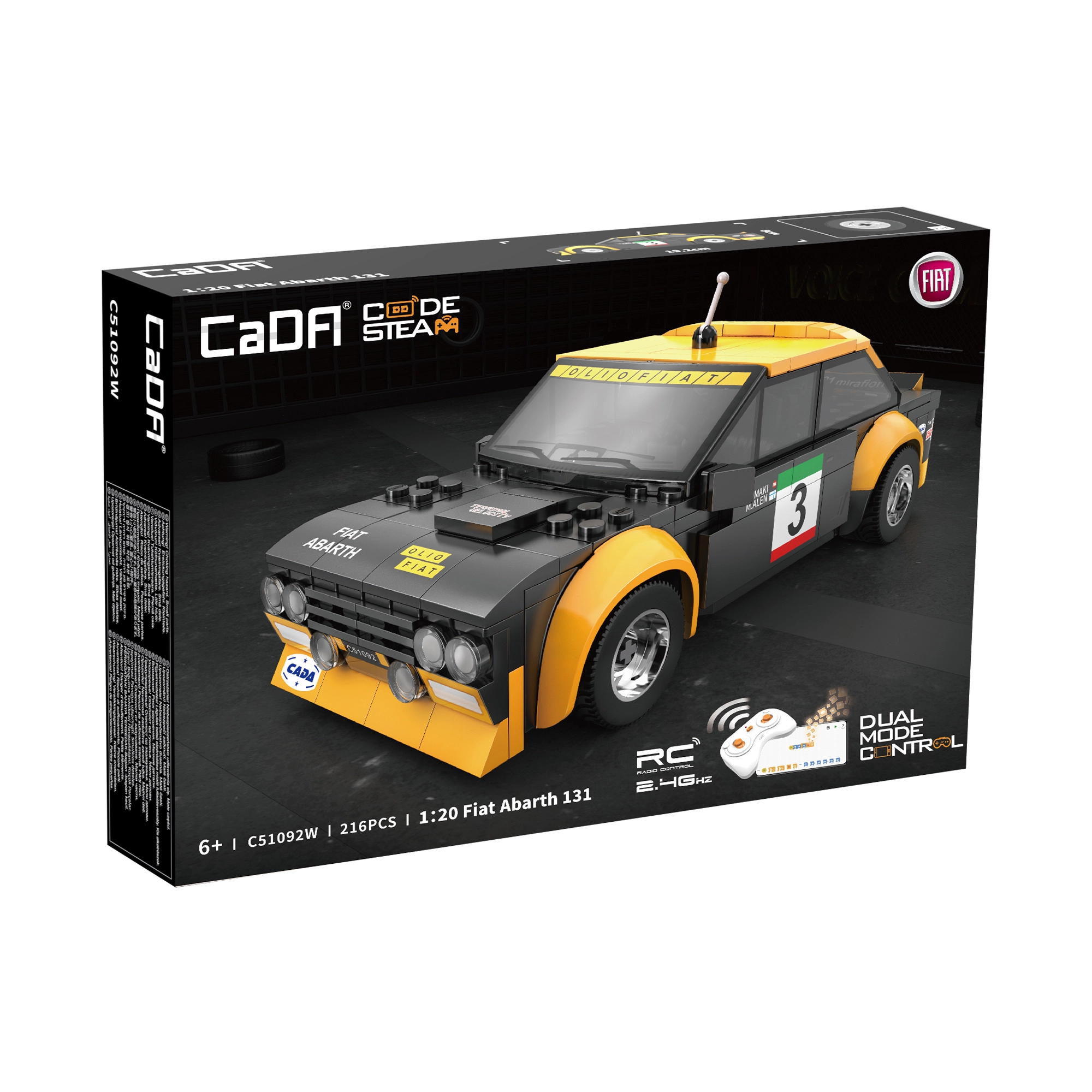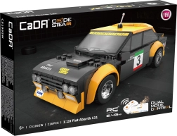Zažijte dynamickou jízdu s propracovaným modelem FIAT ABARTH 131 v měřítku 1:20. Auto má černo‑žluté závodní lakování s potisky, široké blatníky, anténu a realistický kokpit. Díky gumovým kolům hladce jezdí po různých površích a dosahuje rychlosti až 3,8 km/h.