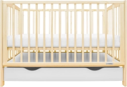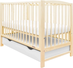 Dětská postýlka New Baby Lilly v přírodním provedení spojuje moderní design, promyšlené funkce a kvalitní materiály. Stahovací bočnice umožňuje pohodlnou manipulaci jednou rukou, zatímco rošt s 3 výškovými úrovněmi roste s vaším miminkem. Větraný rošt podporuje cirkulaci vzduchu a pomáhá udržet matraci suchou a hygienickou.
