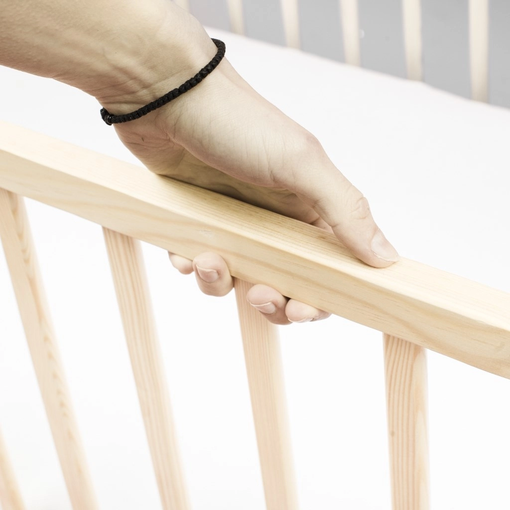 Nový bezpečný systém umožňuje snadné spuštění bočnice jednou rukou. Rychle se dostanete k miminku a zároveň zachováte maximální bezpečnost během spánku.