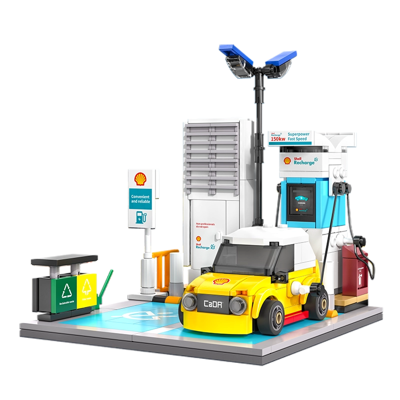 Tato stavebnice CaDA přináší autentickou mini EV nabíjecí stanici SHELL se žlutým vozem a pečlivě propracovanými detaily. Užijete si plynulé stavění, reálné prvky napájení a spoustu možností pro představivou hru – od parkování přes připojení kabelu až po „dobíjení“ auta.