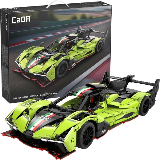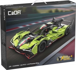 Model CaDA PHANTOM WING přináší intenzivní zážitek z konstrukce i vystavení. Aerodynamická zelená karoserie, promyšlené detaily interiéru a funkční prvky – od řízení po odpružení – vytvářejí autentický vzhled i pohyb závodního vozu. Po sestavení měří auto přibližně 54 × 13,5 cm, což z něj dělá působivý kousek do vitríny i na hraní.