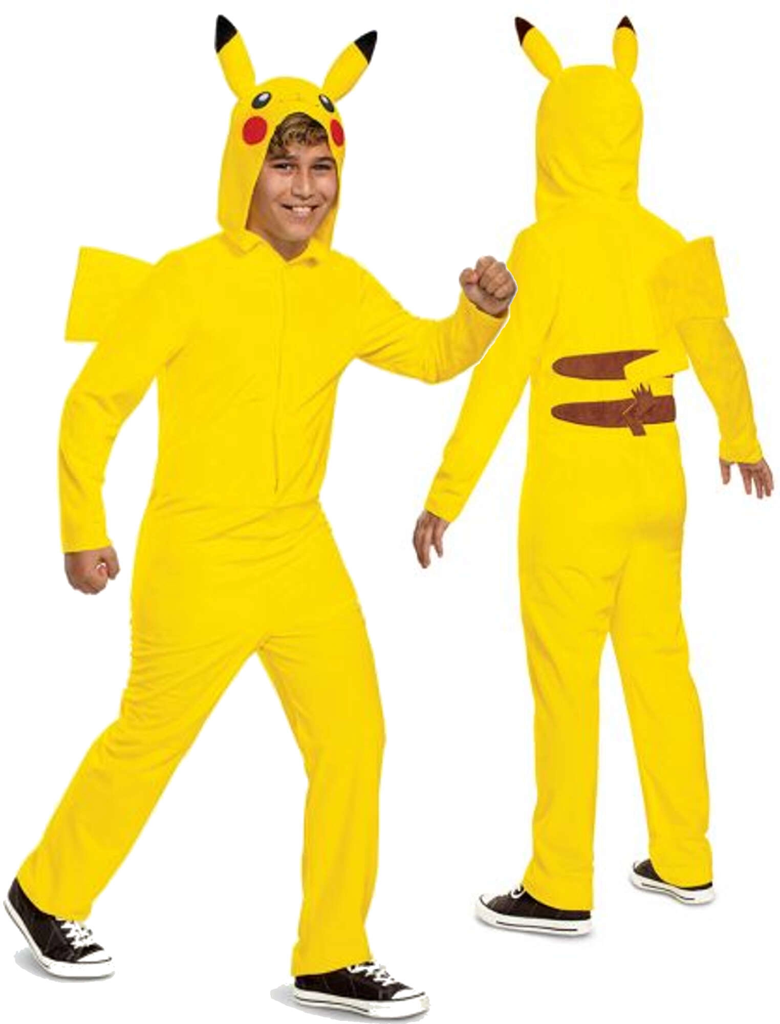 Tento oficiálně licencovaný kostým inspirovaný světem POKEMON promění vaše dítě v roztomilého Pikachu. Jednodílný žlutý overal z příjemného polyesteru má kapuci s charakteristickými ušima a vyšívaným obličejem a na zádech nechybí typický bleskový ocásek.