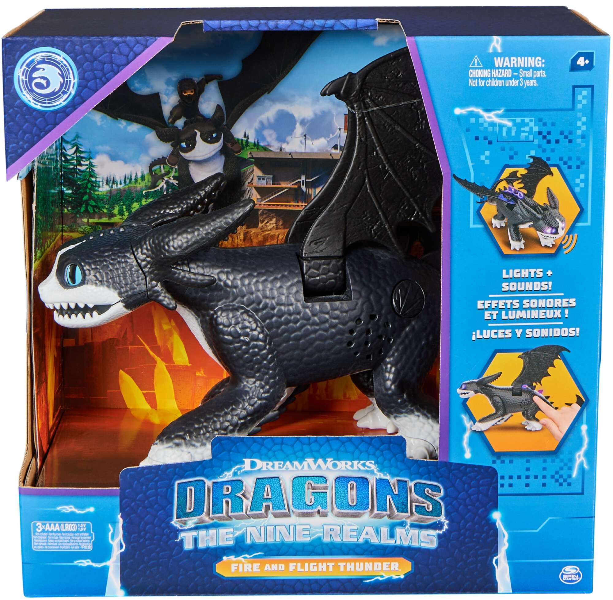 Aktivujte dračí řev a fialové podsvícení hrotů a tlamy pro dechberoucí akci jako ve filmu.