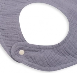 Mušelínový dětský bryndák New Baby v šedé barvě je vyroben z lehké a příjemné organické bavlny. Materiál je šetrný k citlivé dětské pokožce, výborně saje vlhkost a rychle schne, takže se hodí jak na slintání při prořezávání zoubků, tak i k udržení čistoty při jídle.