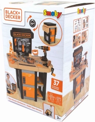Dětský pracovní ponk Smoby BLACK+DECKER Bricolo s celkem 37 doplňky potěší všechny malé kutily. Stabilní pracovní stůl se zásuvkami a držáky nářadí obsahuje věrné repliky nástrojů BLACK+DECKER – mechanickou vrtačku, kladivo, pilku, šroubovák, klíč, kleště a svěrák. Bezpečné provedení bez ostrých hran rozvíjí jemnou motoriku, kreativitu a hru na profese.