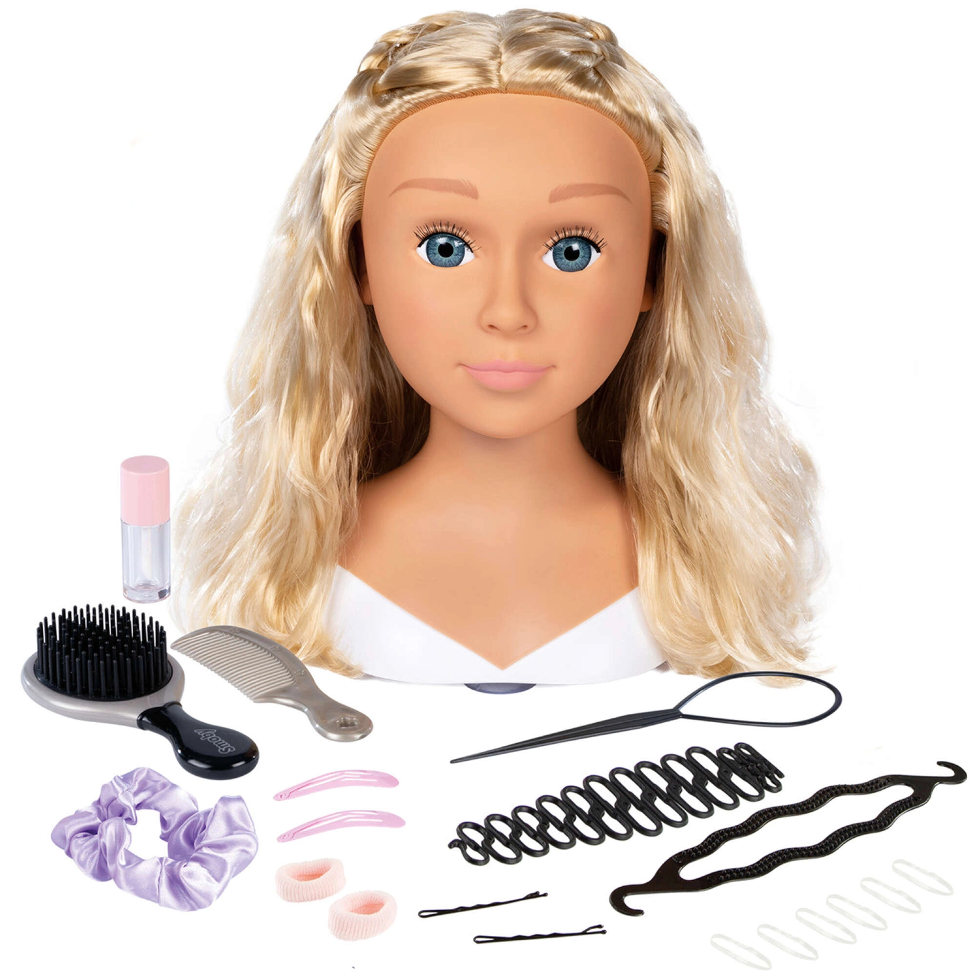 Tato realistická hlava pro česání je ideální pomůckou pro malé kadeřnice a vizážistky. Dlouhé, lesklé syntetické blond vlasy skvěle drží tvar, dají se opakovaně česat, zaplétat a upravovat do desítek účesů. Stabilní základna usnadní práci a doplňky jako kartáč, hřeben, sponky, gumičky či nástroje na zaplétání otevírají dveře k neomezené kreativitě.