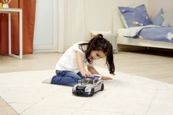 Díky pevné plastové karoserii a velkým kolům je auto stabilní a připravené na každodenní hraní v interiéru. Ideální jako dárek pro malé milovníky akce a rychlých jízd.