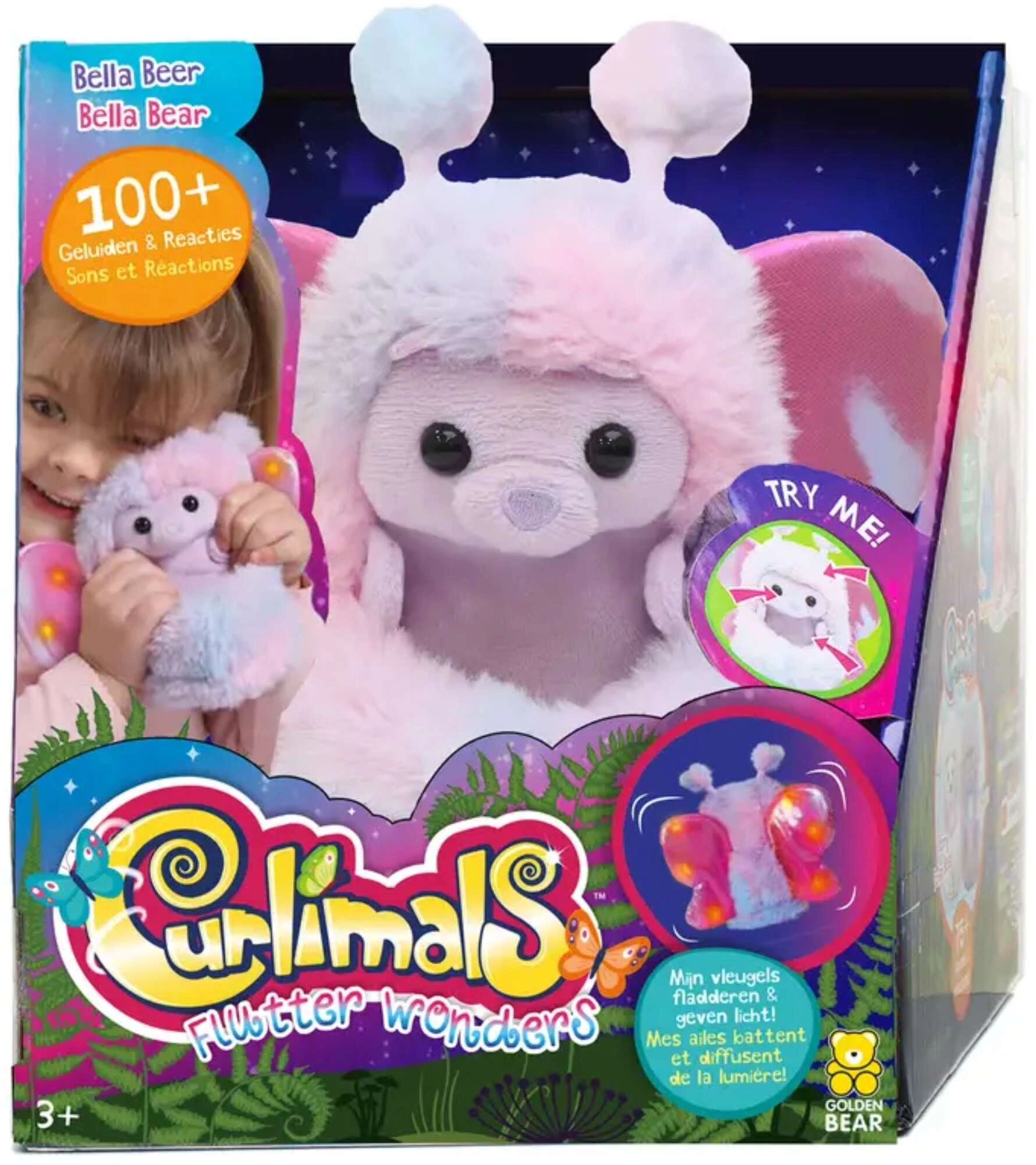 Objevte kouzelný svět CURLIMALS s medvídkem Bella, který si získá srdce každého dítěte. Má měkoučké hebké chloupky, vyšívaný obličej a plastová očíčka. Na zádech najdete dvě růžová křidélka, která se pohybují spolu s hračkou a zároveň svítí ve tmě – perfektní společník do pokojíčku i na cesty.