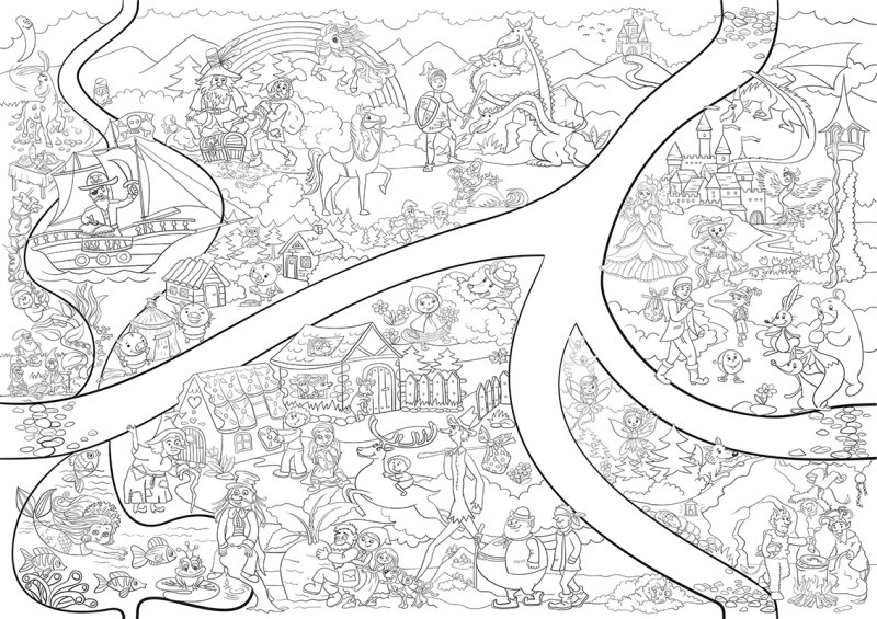 Objevte zábavu pro malé i velké s touto skutečně velkou omalovánkou na téma pohádky o rozměru 64 × 90 cm. Díky papíru s vysokou gramáží 200 g/m² můžete bez obav použít pastelky, voskovky i vodové barvy. Při zakoupení všech 6 typů je lze spojit do jednoho velkého díla propojeného cestou.