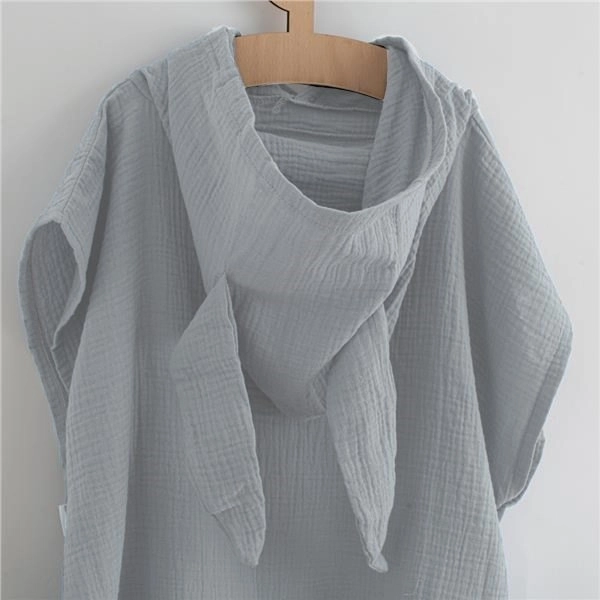 Stylové mušelínové pončo pro děti je ideální doma, u bazénu i u moře. Díky lehké dvouvrstvé mušelínové tkanině z 100% bavlny je pončo vzdušné, savé a rychleschnoucí. Kapuce s oušky dodává roztomilý vzhled a zároveň chrání mokré vlásky před průvanem.
