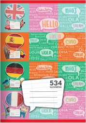 Praktický školní sešit formátu A5 se 30 listy pro výuku jazyků. Obsahuje linkování 8 mm a 2 svislé osy pro cizí slovo a jeho výslovnost. Ideální do školy i na domácí studium, k dispozici více variant. Cena je za 1 kus.