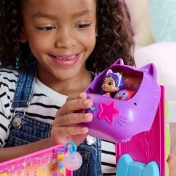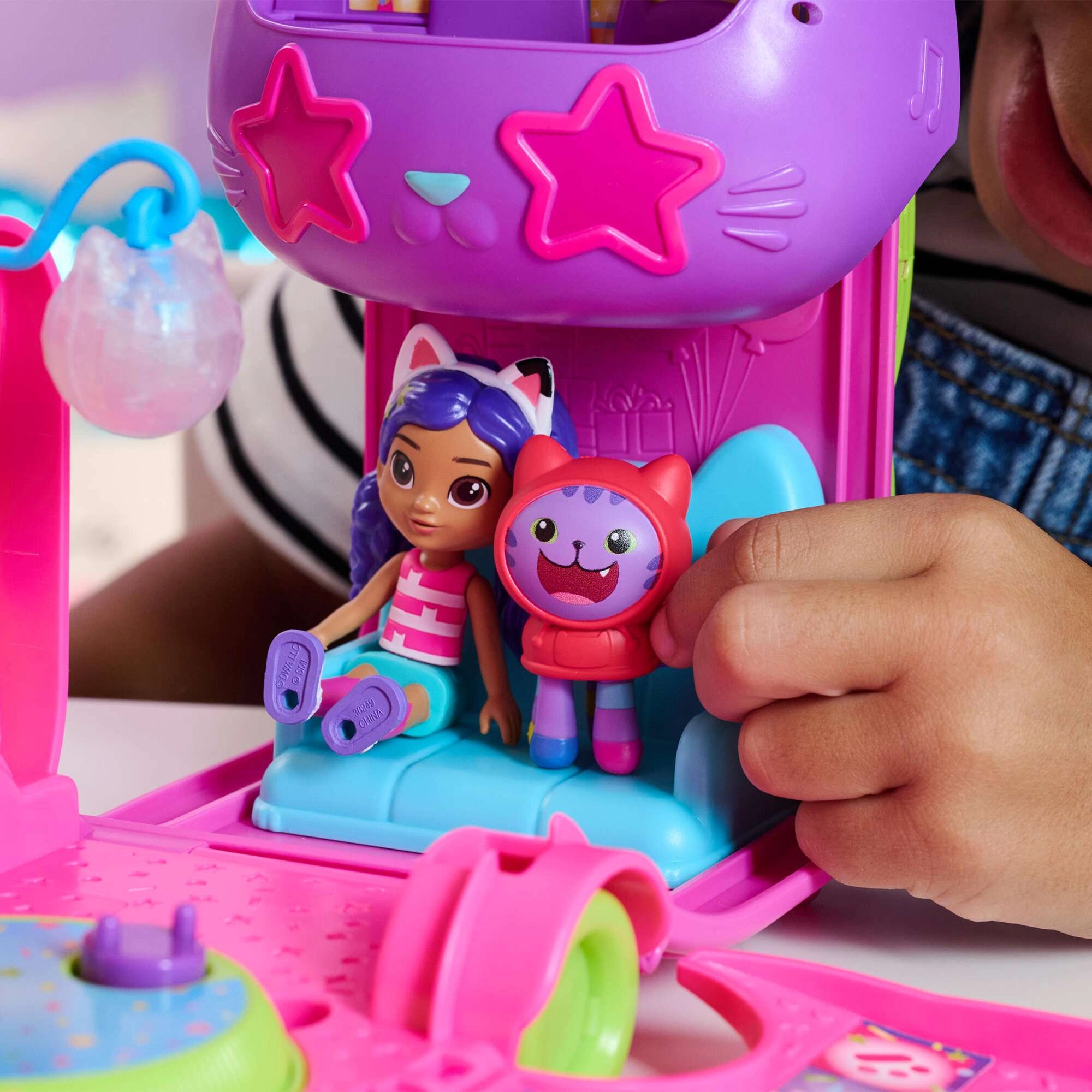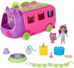 Party autobus z oblíbeného seriálu Kocí domek GABBY se během chvilky promění z pojízdného busu v stylovou scénu pro oslavy. Otevřete přední část a sklopte kabinu řidiče – uvnitř čeká taneční parket, kocí pohovka a točící se karaoke pódium. Díky kompaktní konstrukci a kolečkům je set ideální na cesty i domácí hraní.