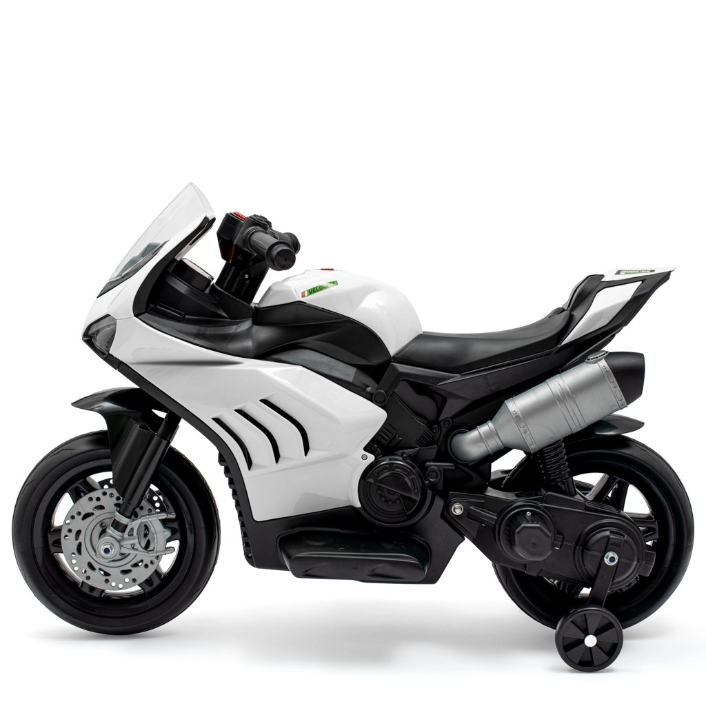 Elektrická motorka Supersport je navržena pro malé začínající jezdce, kteří chtějí zažít pocit skutečné jízdy. Díky plynovému pedálu a tlačítku pro jízdu vpřed i vzad se velmi snadno ovládá a podporuje rozvoj koordinace a motoriky. Pomocná kolečka zajišťují stabilitu a jistotu při prvních jízdách.
