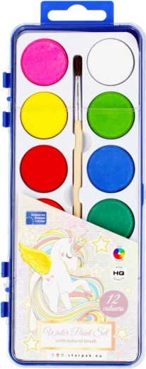 Objevte kouzlo malování s vodovkami s motivem jednorožce. Sada nabízí 12 živých odstínů, které se snadno míchají a nanášejí, a je doplněna o štětec, takže můžete začít tvořit ihned po rozbalení. Lehký a tenký formát je vhodný do batohu i na cesty.