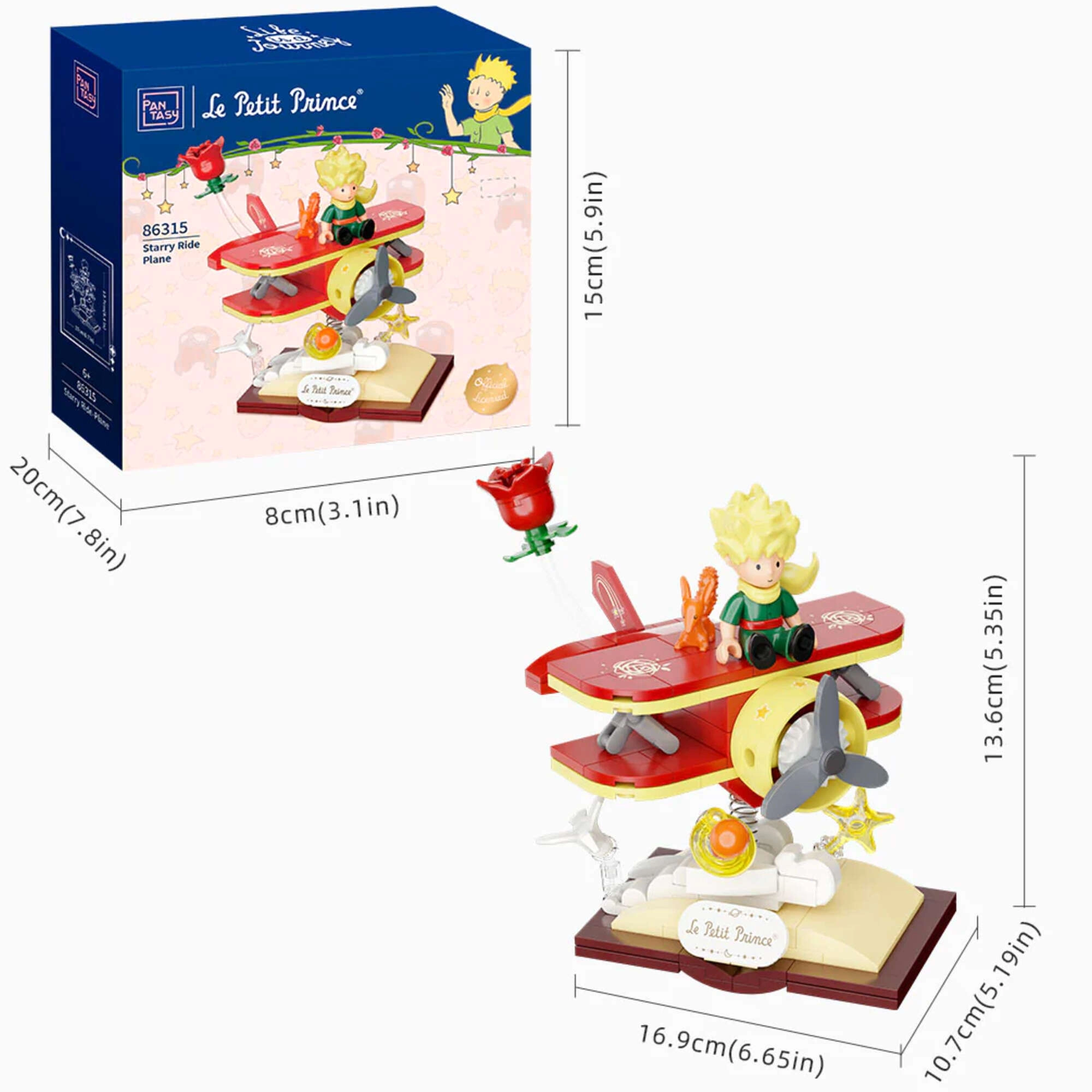 Vstupte do poetického světa Malého prince a postavte si elegantní dvouplošník s liškou a růží na scénické základně v podobě otevřené knihy. Díky preciznímu zpracování a stabilní konstrukci je model skvělý pro vystavení i jemné herní scénky. Tištěné motivy zajišťují dlouhodobě krásný vzhled bez odlupování.