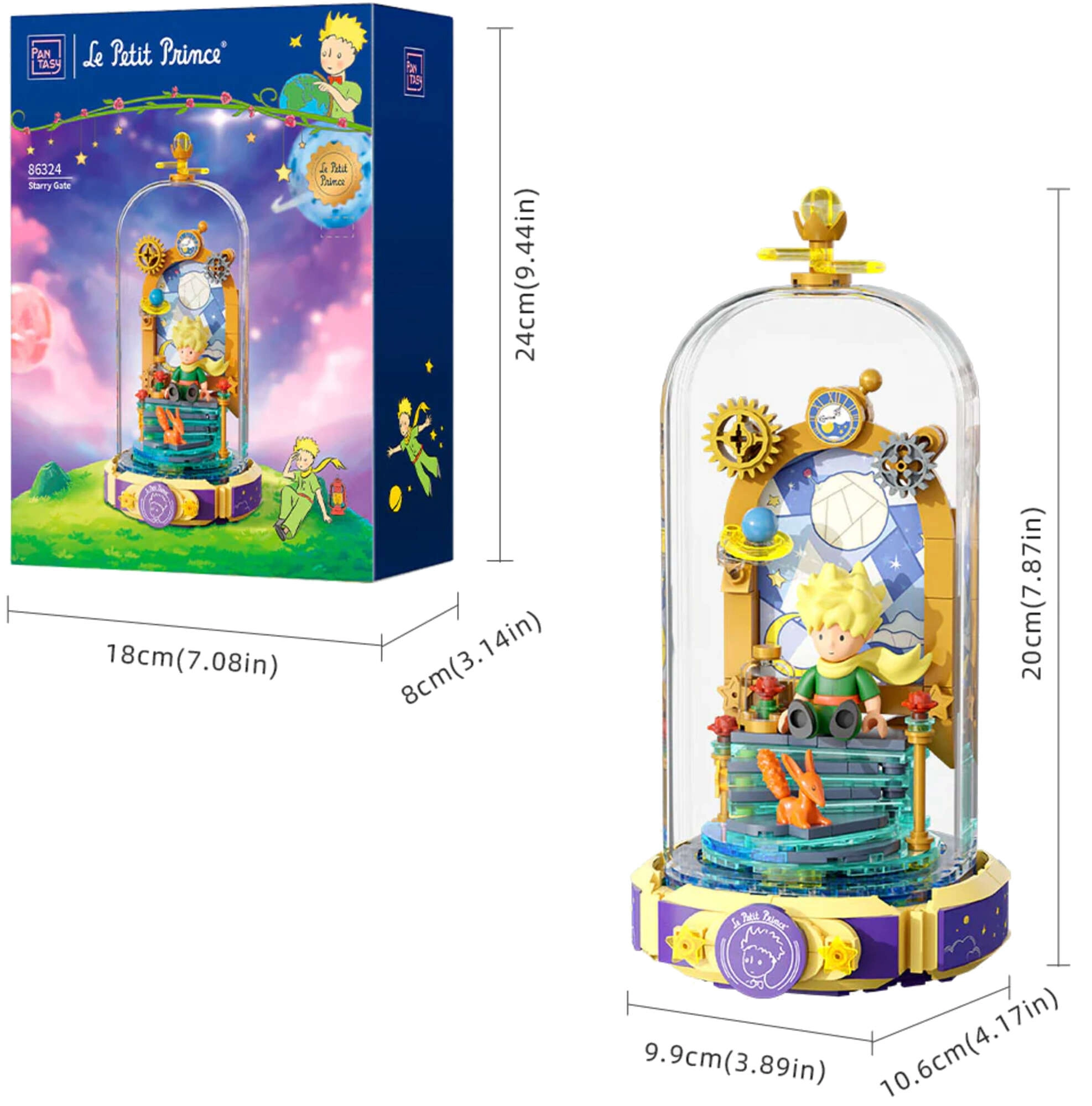 Vstupte do poetického světa LE PETIT PRINCE a postavte si scénu „Hvězdná brána“ s Malým princem a liškou, zdobenou zlatými hvězdami, růžemi a jemnými ornamenty. Podstavec ve tvaru otevřené knihy s nápisem „Le Petit Prince“ podtrhuje literární kouzlo této nadčasové legendy.