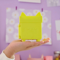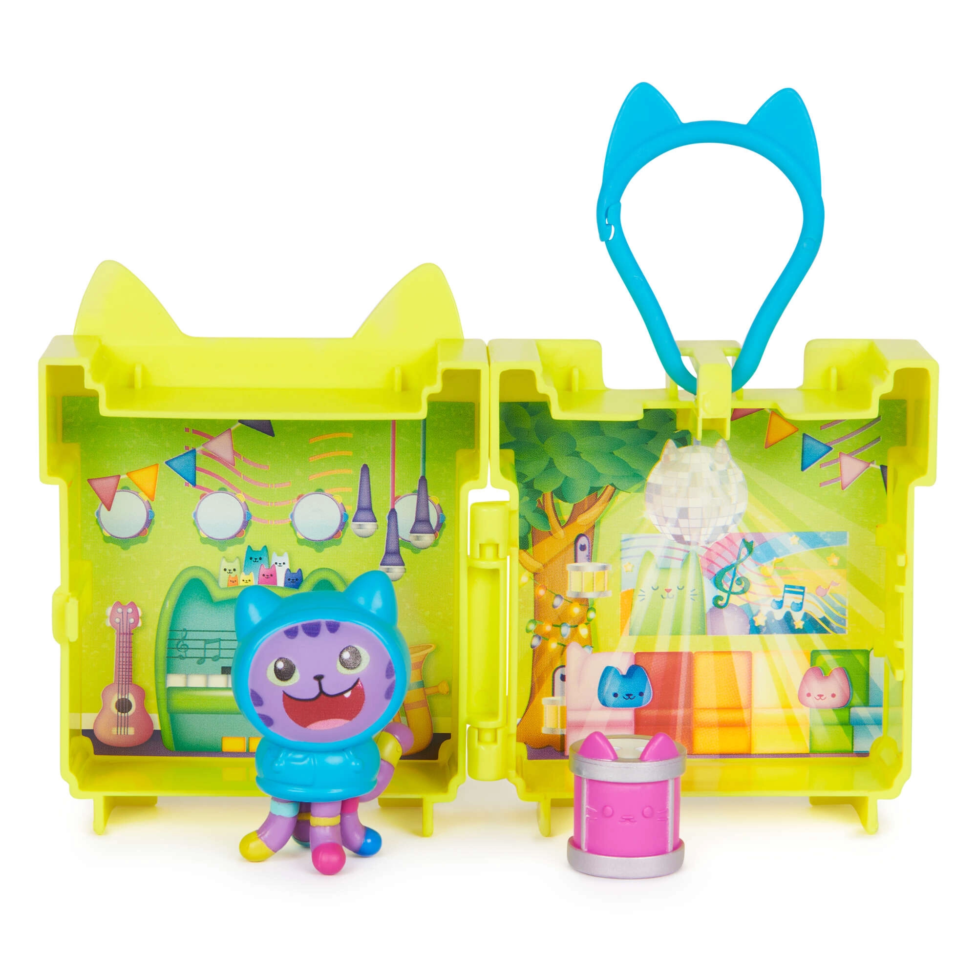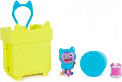 Objevte roztomilý minibox s motivem DJ Catnip z oblíbeného seriálu Gabby’s Dollhouse. Žluté kočičí pouzdro se otevře do hudební scény, kde děti mohou rozvíjet fantazii, vyprávět příběhy a hrát si s parádními doplňky. Díky praktické karabince se set snadno připne na batoh nebo tašku a je tak vždy po ruce.
