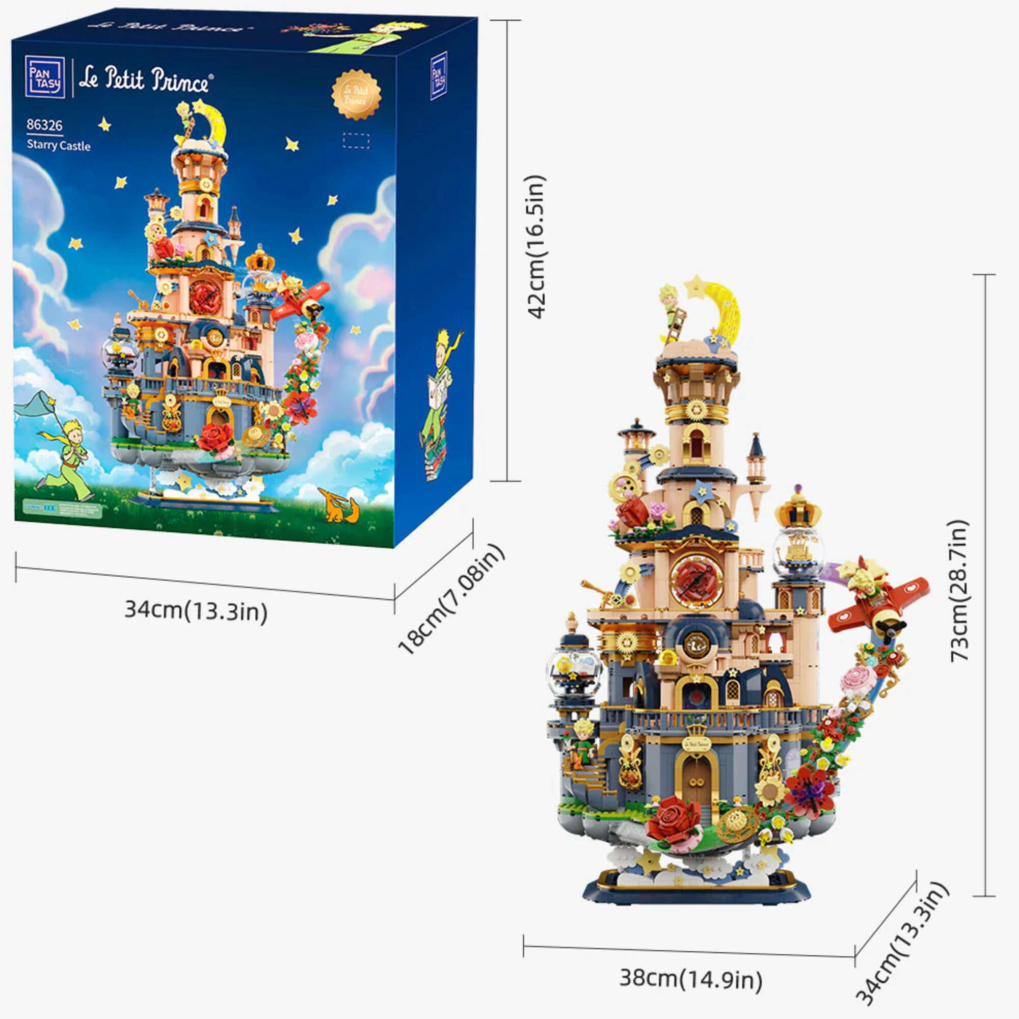 Vstupte do poetického světa Le Petit Prince s okouzlujícím modelem zámku, který se jakoby vznáší mezi hvězdami. Propracované věže, balkony, květinové motivy a viditelné ozubené prvky vytvářejí působivou scenérii, jež vynikne na každé poličce. Stavebnice se hodí pro tvořivé stavitele i vášnivé sběratele – od první kostičky až po poslední detail.