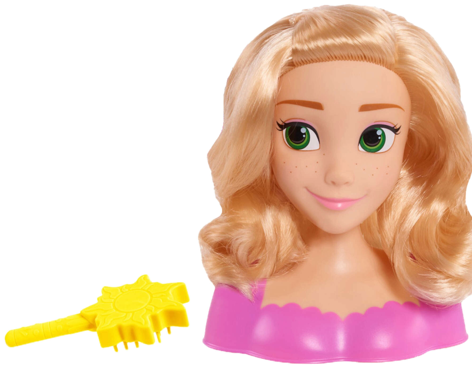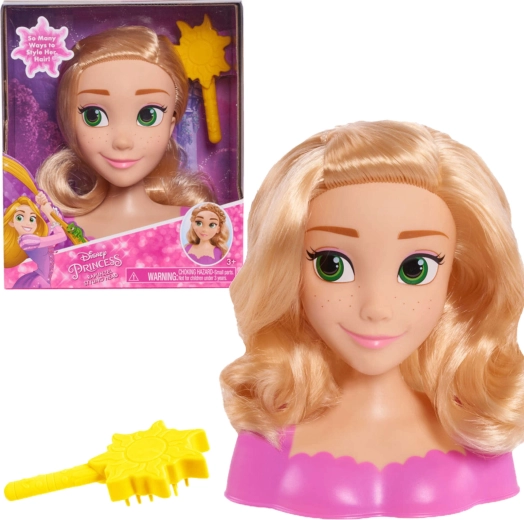 Objevte kouzelnou hlavu na česání s motivem Disney princezny Rapunzel inspirovanou filmem Zaplétaná. Dlouhé blond vlasy lze česat, stylovat a zdobit pomocí přiložené kartáče ve tvaru slunce. Skvělá hračka pro děti od 3 let, která podporuje kreativitu, jemnou motoriku a představivost.