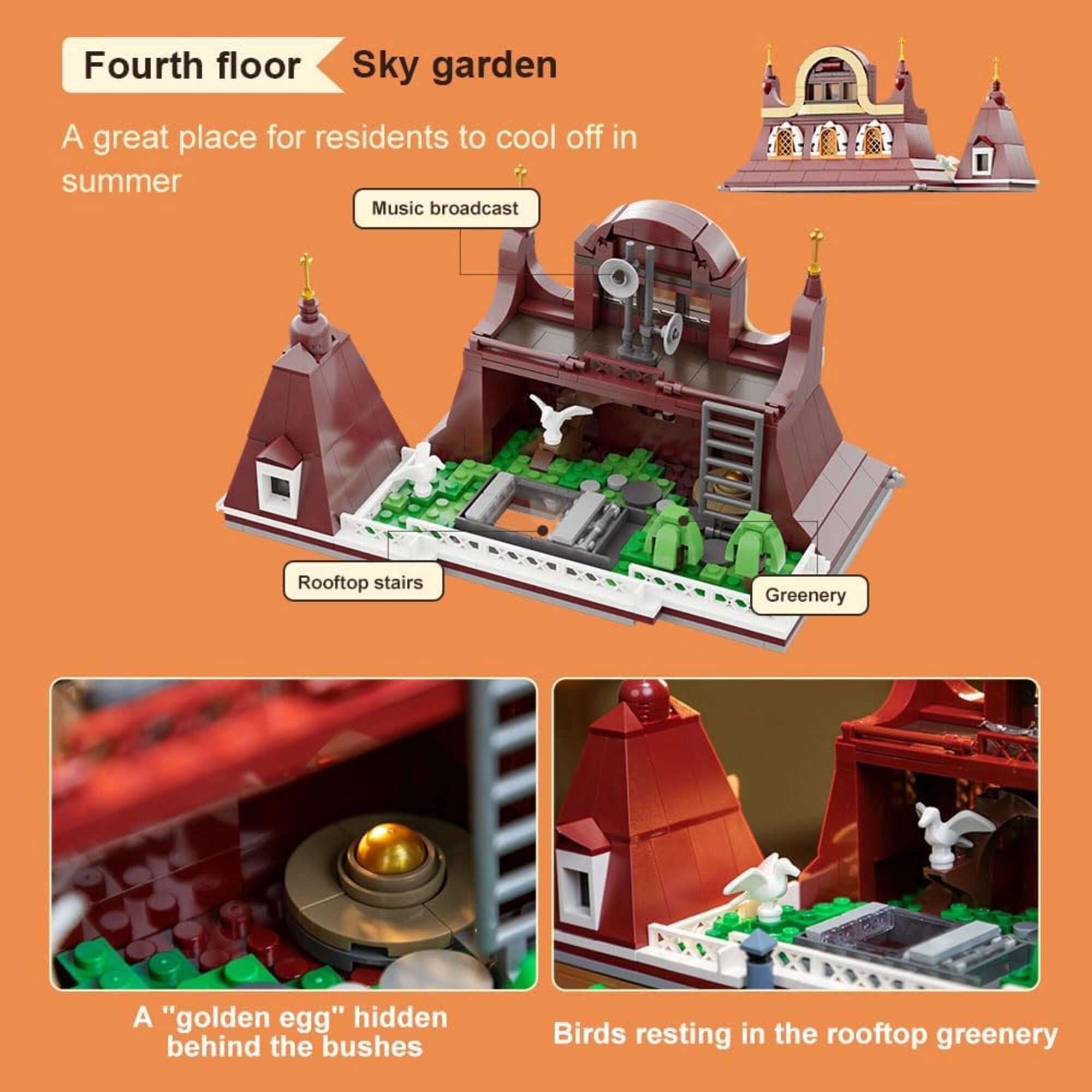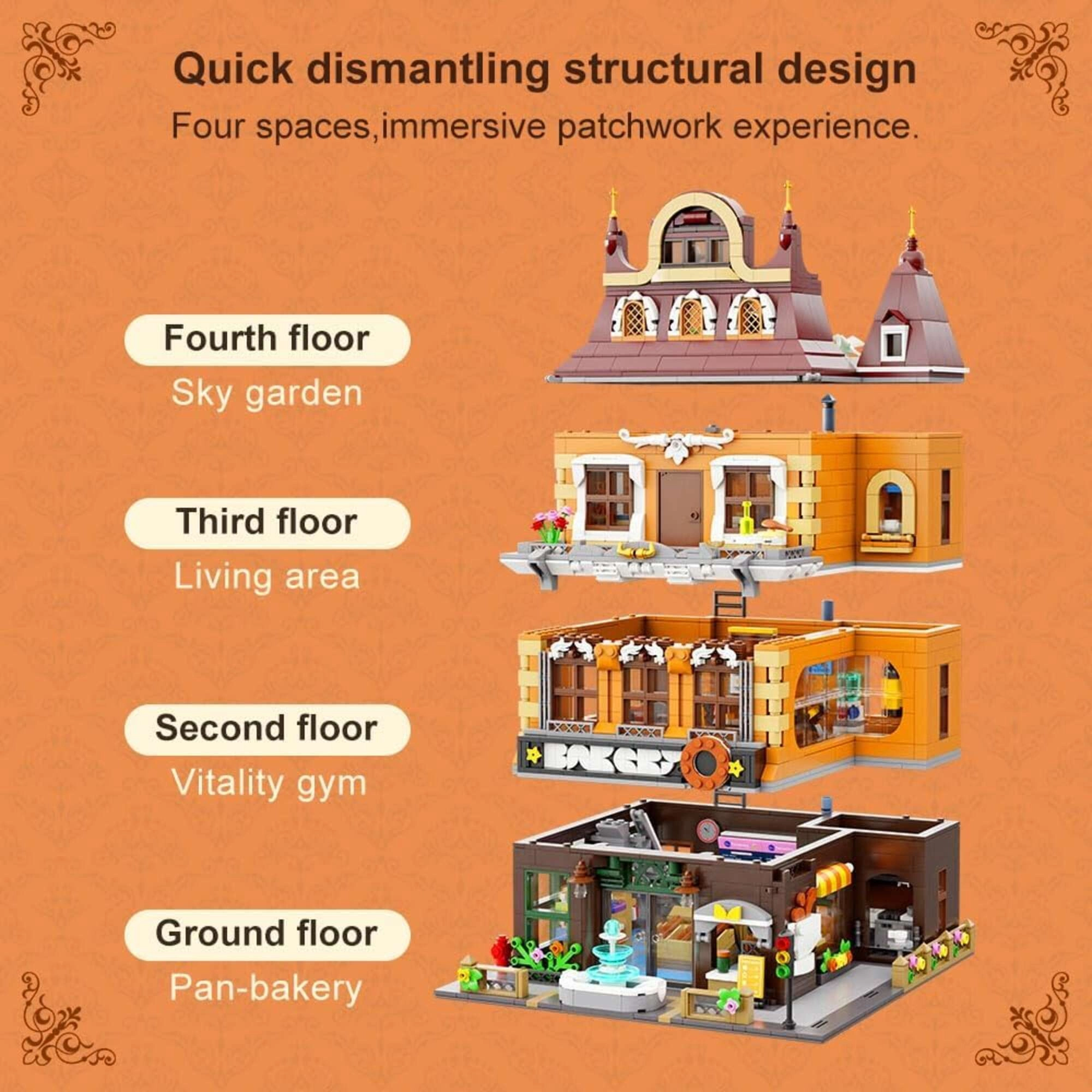 Užijte si působivý model inspirovaný evropskou architekturou. Teplé hnědé tóny a promyšlené detaily vytvářejí autentickou atmosféru rušného tržiště – téměř cítíte vůni čerstvě upečeného chleba a kávy. Modulární konstrukce umožňuje snadné oddělení pater a jejich přestavby pro maximální kreativitu a vystavení.