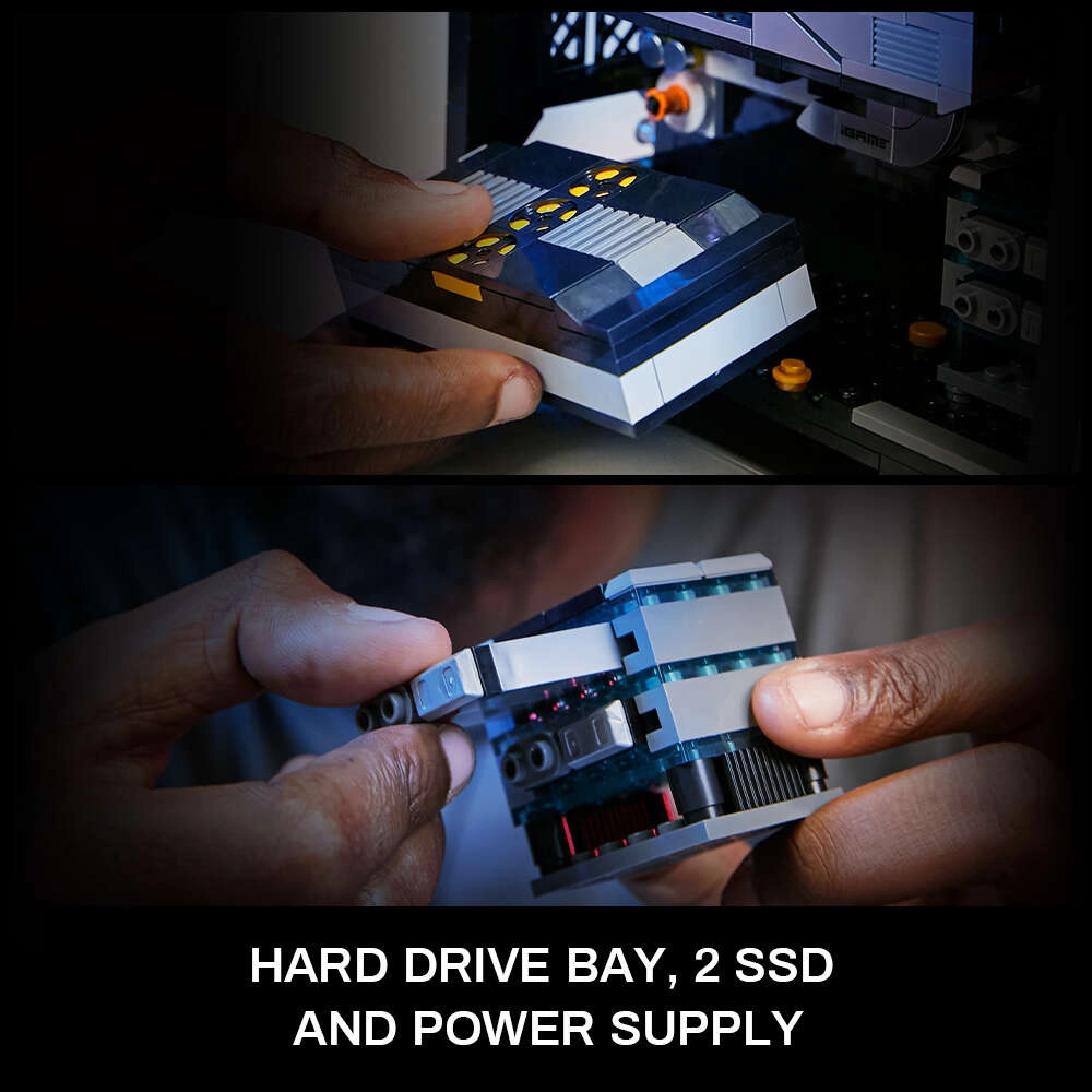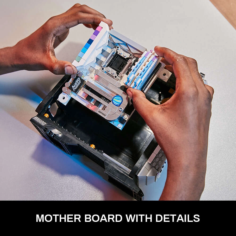 Objevte originální stavebnici, která věrně napodobuje moderní herní desktop. Každý modul – od grafické karty přes zdroj a držák pro SSD po základní desku a DDR paměti – se skládá samostatně, takže si vychutnáte realistický pocit z „upgrade“ počítače. Precizní pad tisk na dílcích zajišťuje dlouhodobě krásný vzhled bez nutnosti lepit štítky.