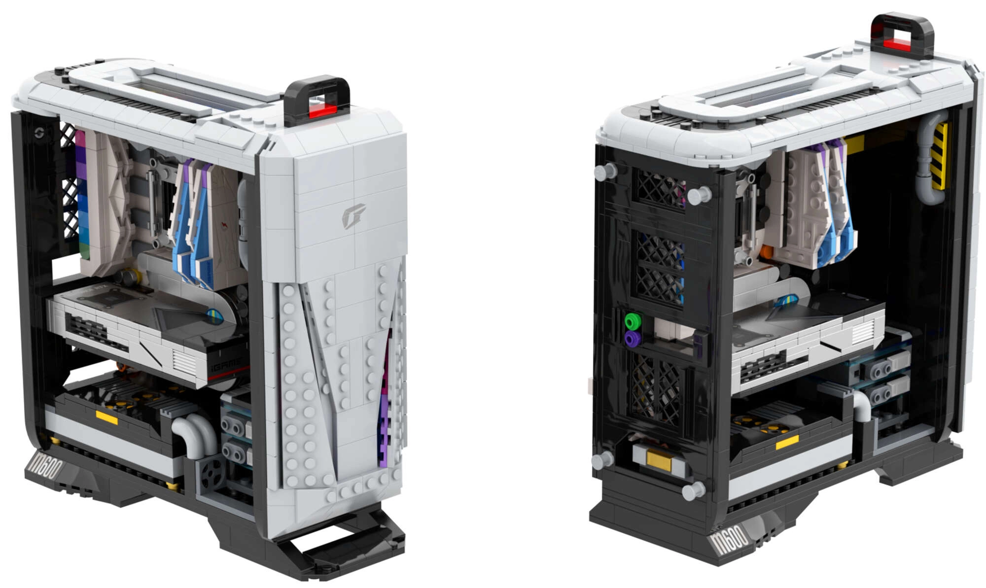 Hotový model připomíná kompaktní PC case s vnitřními detaily a průhledy – ideální na stůl i do sbírky každého hráče.