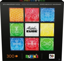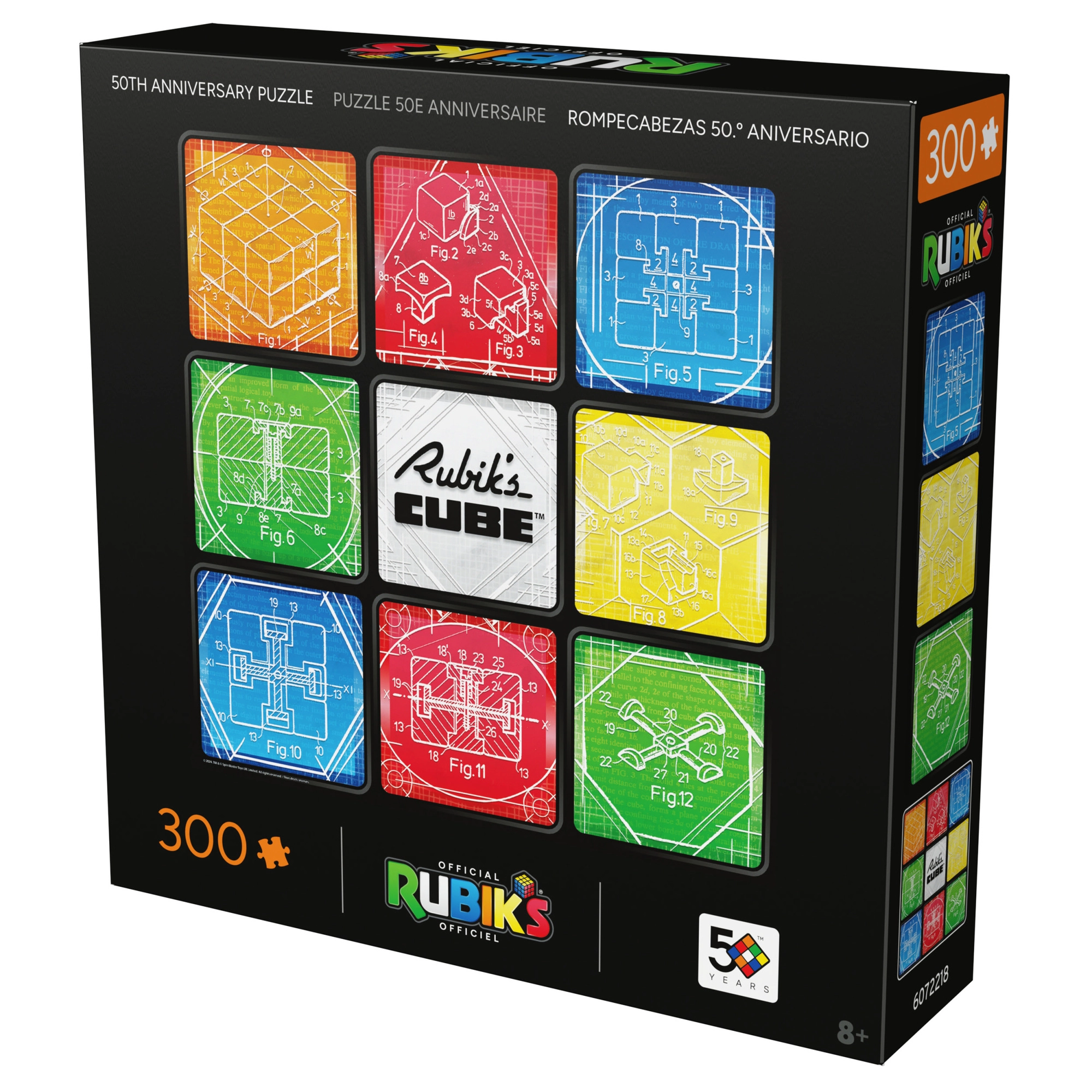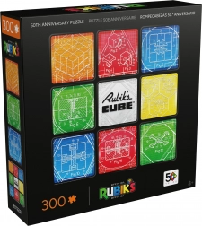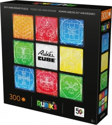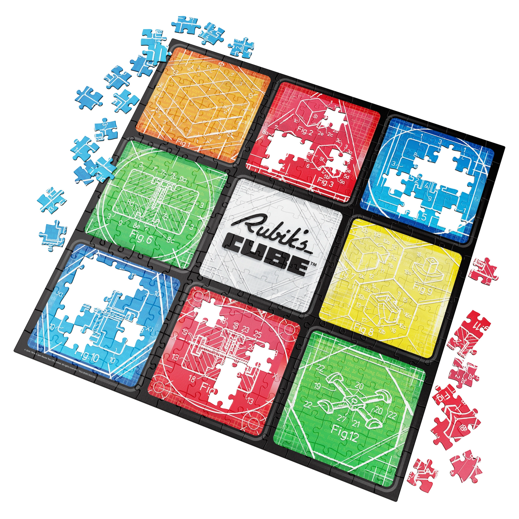 Obsah a motiv: Po složení získáte čtvercový obraz 50,8 × 50,8 cm s devíti poli odkazujícími na klasické uspořádání 3×3. Střed kompozice zdobí logo RUBIK’S CUBE, okolí tvoří technické výkresy mechaniky slavné kostky.