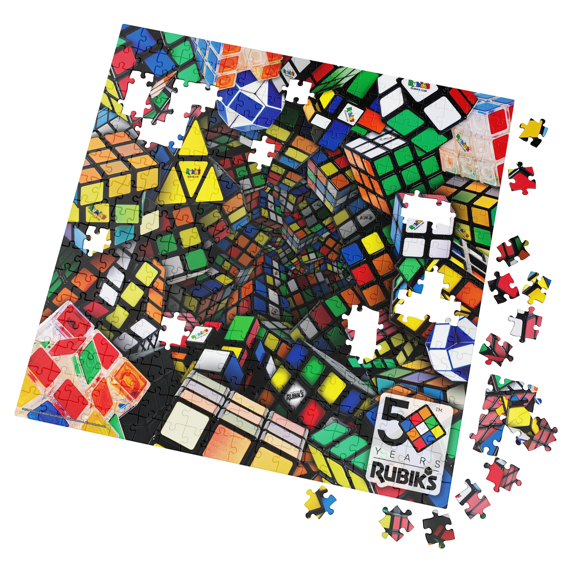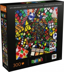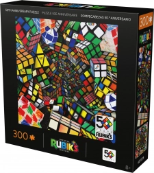 Vstupte do světa ikonické hlavolamové legendy. Tyto puzzle k 50. výročí Kostky Rubik nabízí energickou, až psychedelickou kompozici z různých tvarů a variant kostek napříč historií. Výrazné barvy a dynamické vzory potěší každého fanouška hlavolamů i milovníka designu.