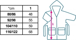 - S kapucí, všitý opasek, dvě hlubší kapsy