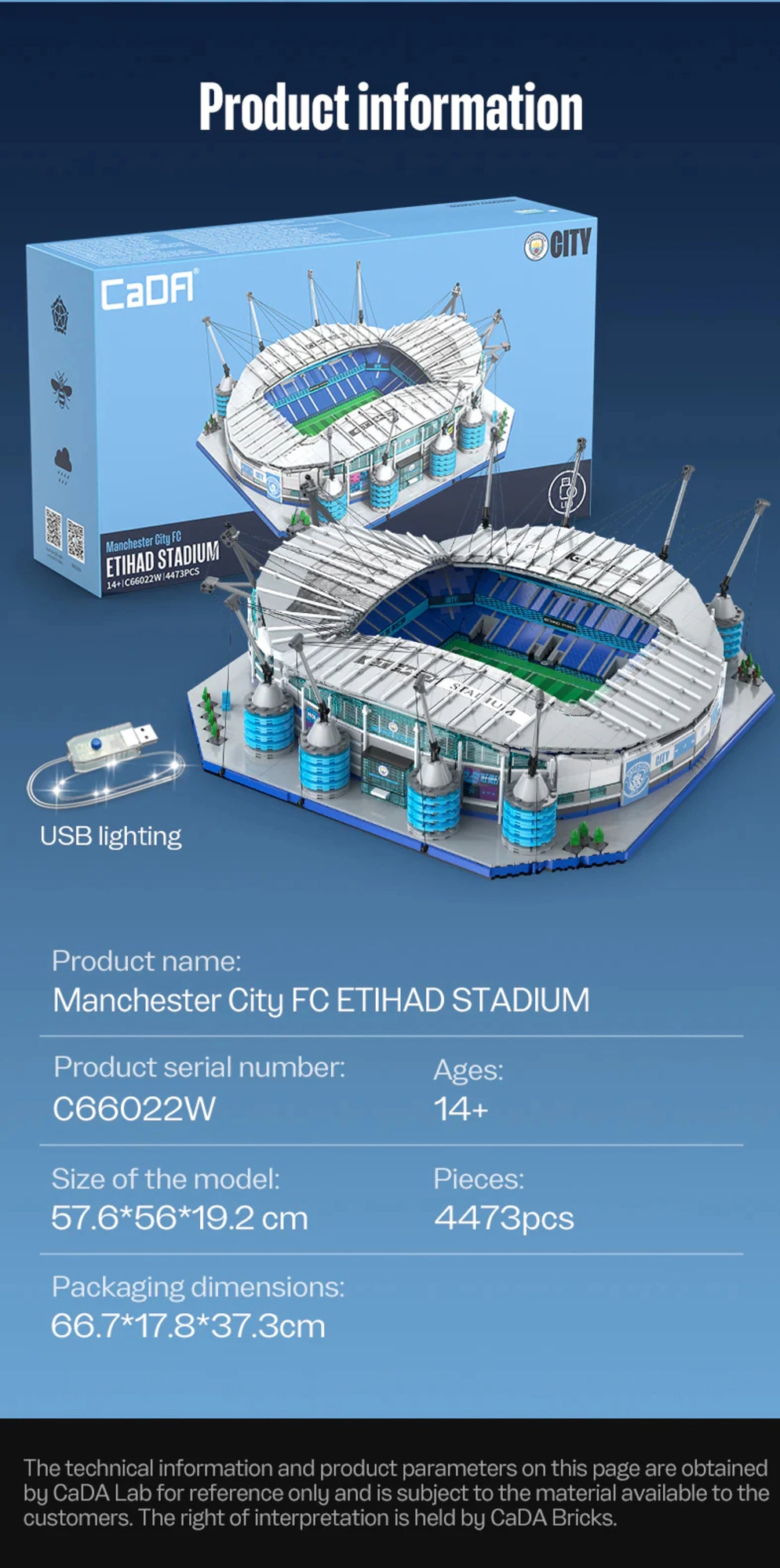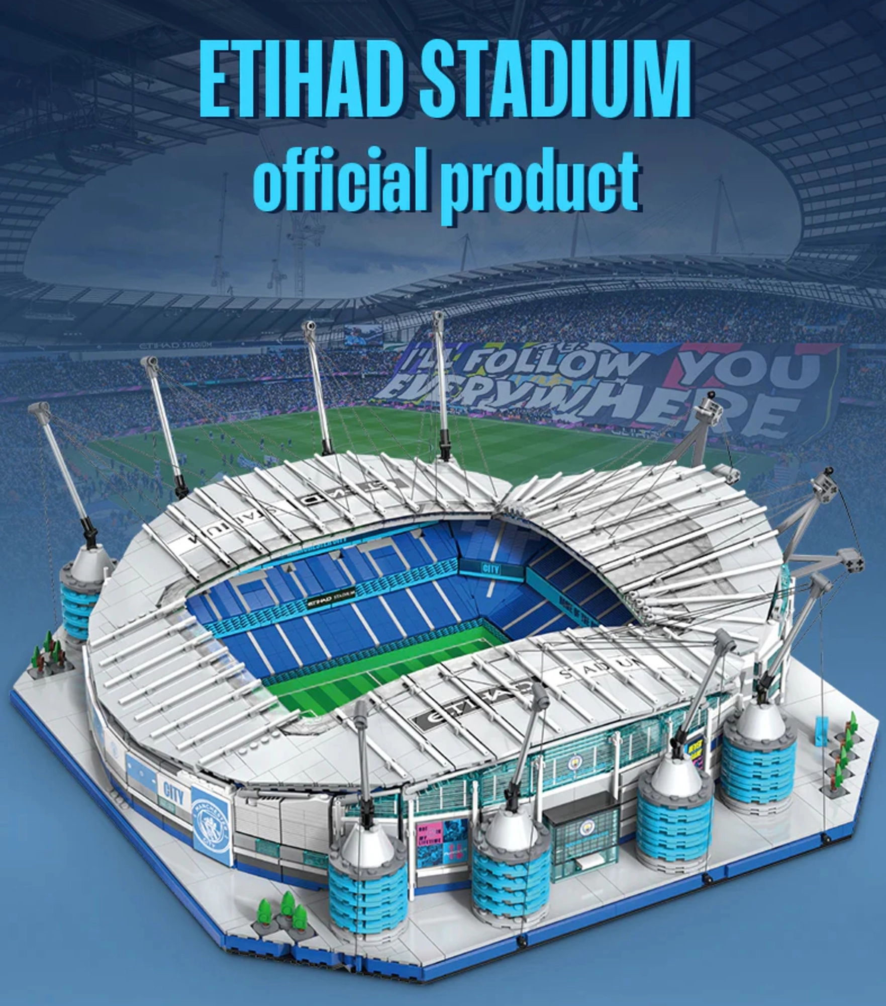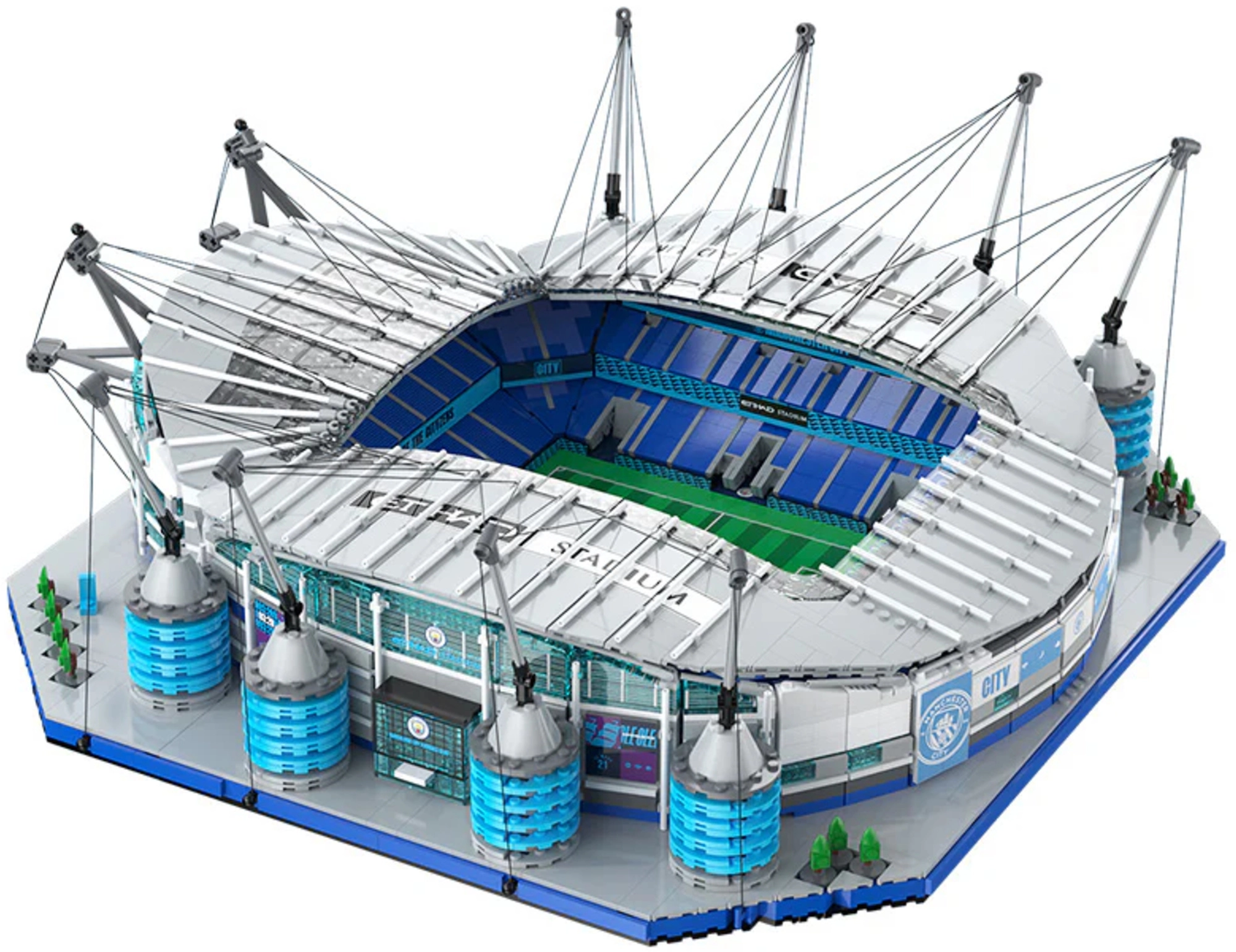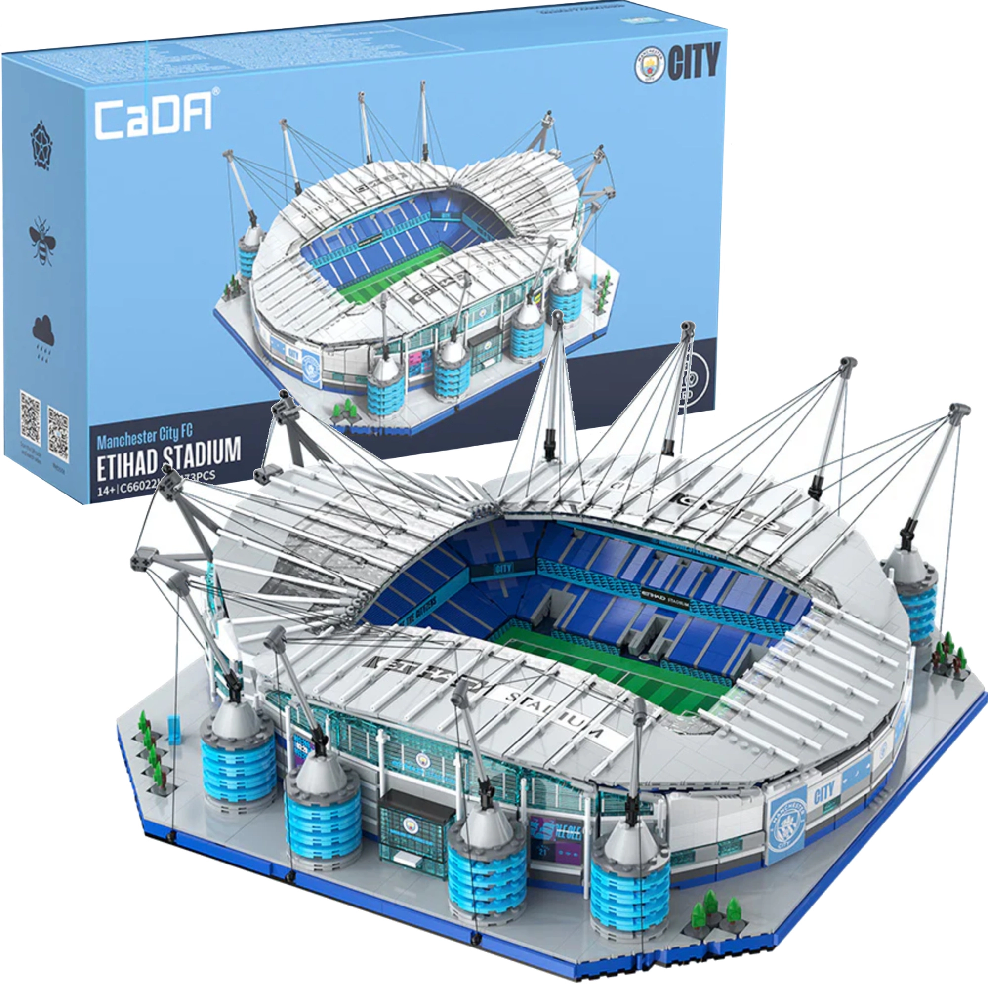 Užijte si prémiový stavitelský zážitek s modelem stadionu Etihad – ikonického domova klubu MANCHESTER CITY. Stavebnice CADA se zaměřuje na autenticitu a precizní zpracování, od zeleného trávníku s brankami přes stupňovité tribuny až po charakteristické věžové pylony s lanovím a fasádní detaily.