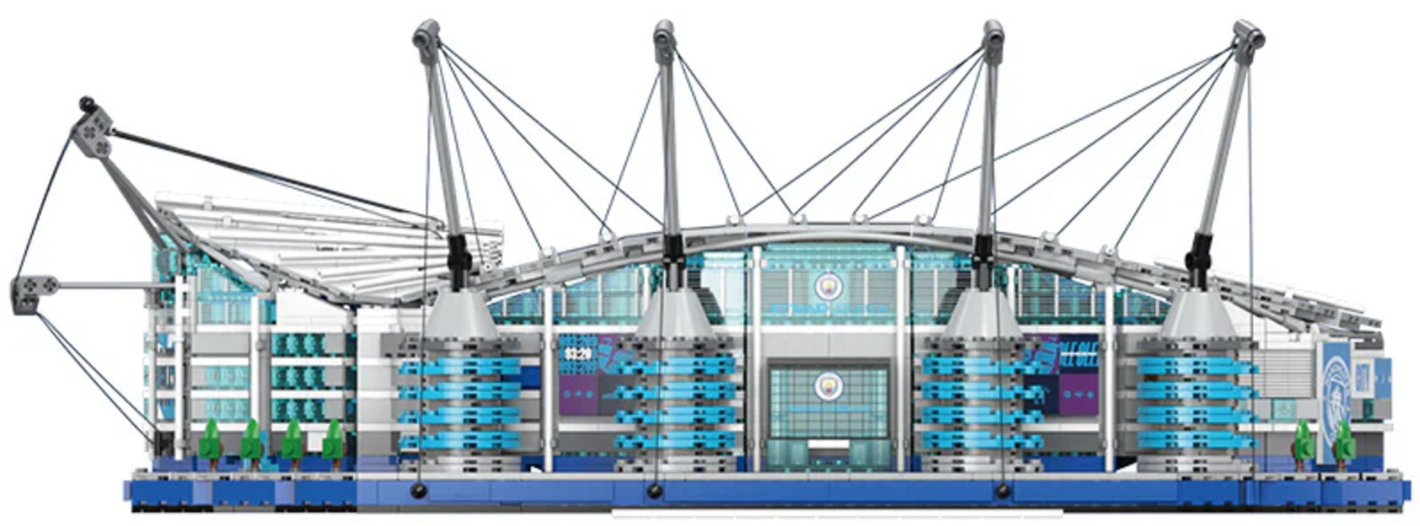 Zaručená autenticita detailů stadionu Etihad – přesné proporce, tribuny, branky i charakteristické pylony s lanovým systémem.