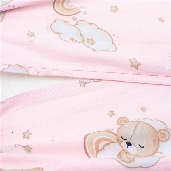 Praktický a stylový potah na dětský klínový polštář je ideální volbou pro každodenní použití. Materiál z 100% bavlny poskytuje měkkost, prodyšnost a jemnost, které ocení i ta nejcitlivější miminka. Růžové provedení s motivem medvídka krásně zapadne do každé dětské postýlky i pokojíčku.