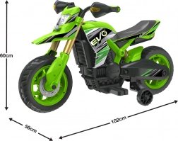 Stylová dětská elektrická motorka EVO Venom přináší bezpečnou zábavu pro malé závodníky. Díky napájení 6V, až 60 minutám jízdy, maximální rychlosti 3 km/h a světelným efektům nabízí skvělý zážitek z jízdy. Stabilní konstrukce, ergonomické stupačky a intuitivní ovládání zajišťují pohodlí a bezpečí doma i venku.