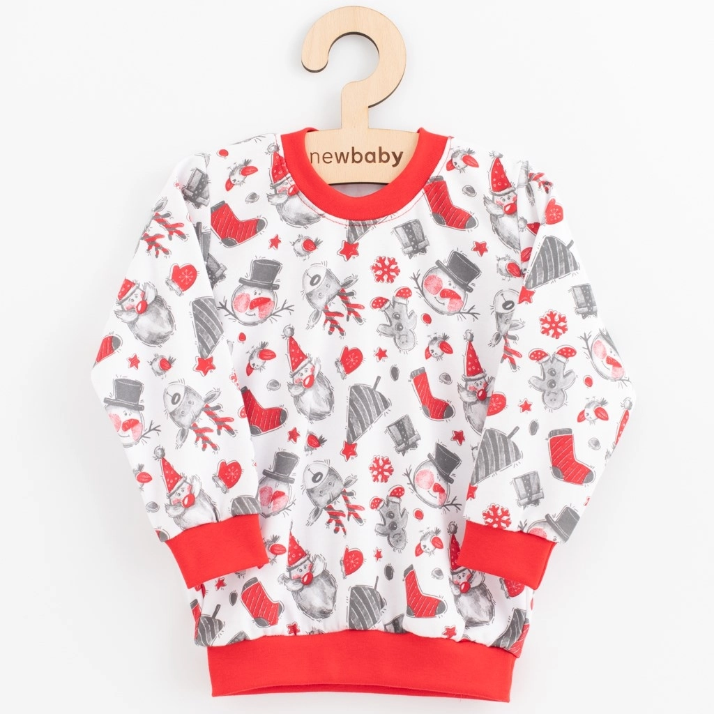 Pohodlné dětské pyžamo z kvalitní 100% bavlny NEW BABY s roztomilým vánočním motivem zajistí měkkost, prodyšnost a maximální komfort při spánku. Tričko s dlouhým rukávem bez zapínání má jemný lem u krku, který netlačí, a kalhoty s měkkou gumou v pase a žebrovanými lemy na nohavicích drží na místě a hřejí. Certifikace OEKO-TEX STANDARD 100 potvrzuje bezpečnost pro citlivou dětskou pokožku.