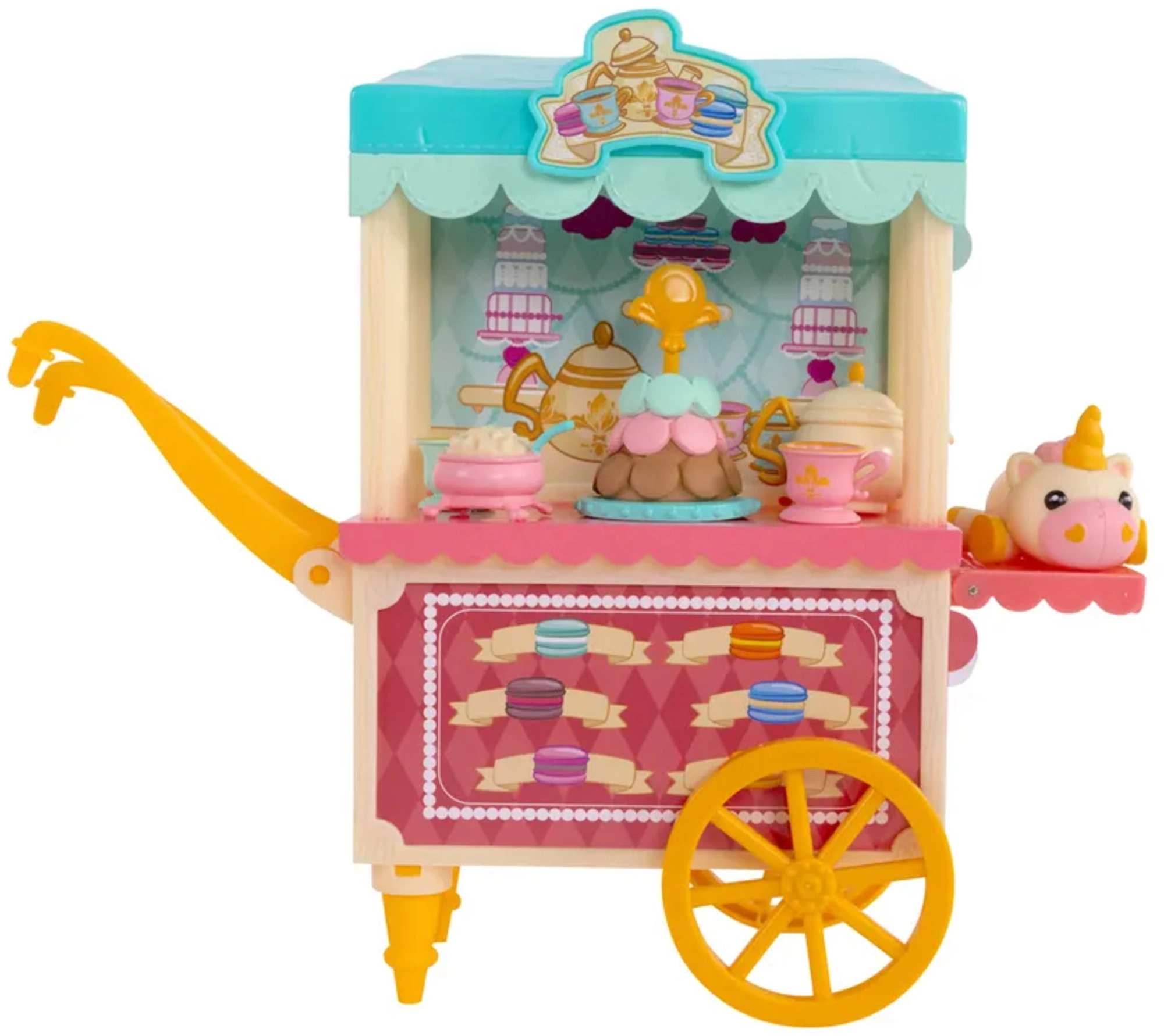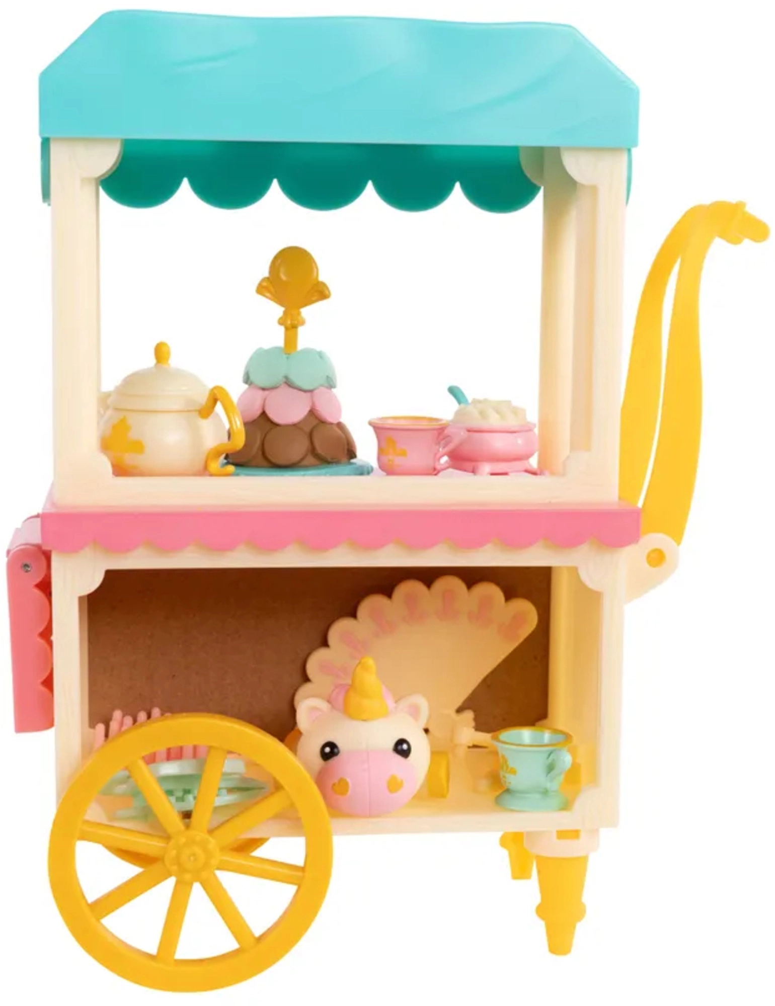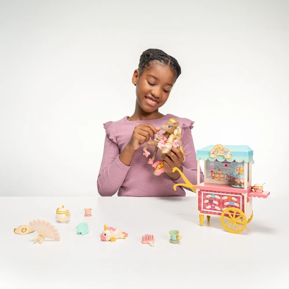 Součástí je velký Tea & Treats vozík s dvojicí pojízdných kol, konvička s čajem, filižanky, makronky na stojánku a další roztomilé drobnosti. Vozík lze pomocí lejcí připnout k poníkovi a vyrazit za zábavou. Díky klipsům ve tvaru podkovy může Cherie pevně držet vybrané doplňky.