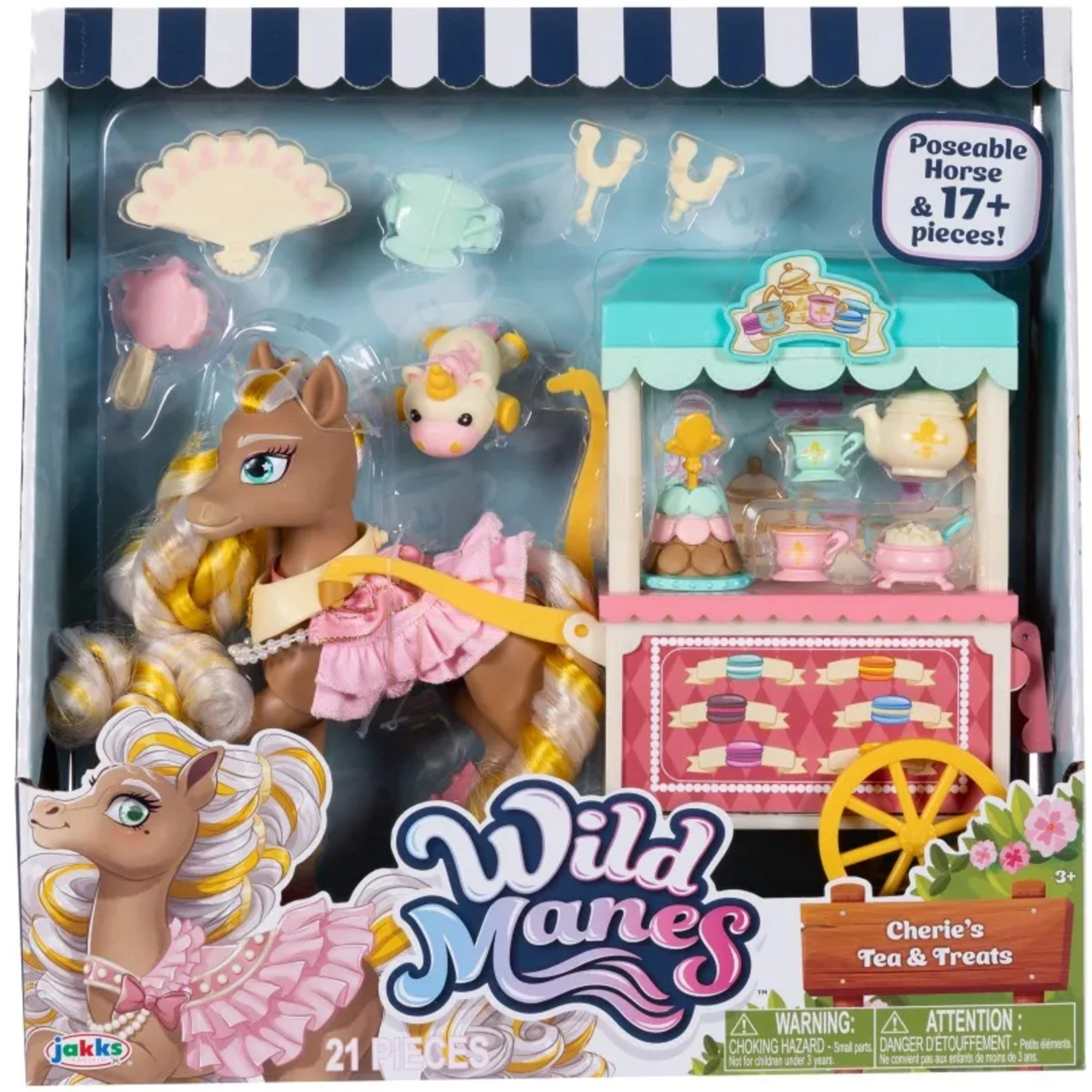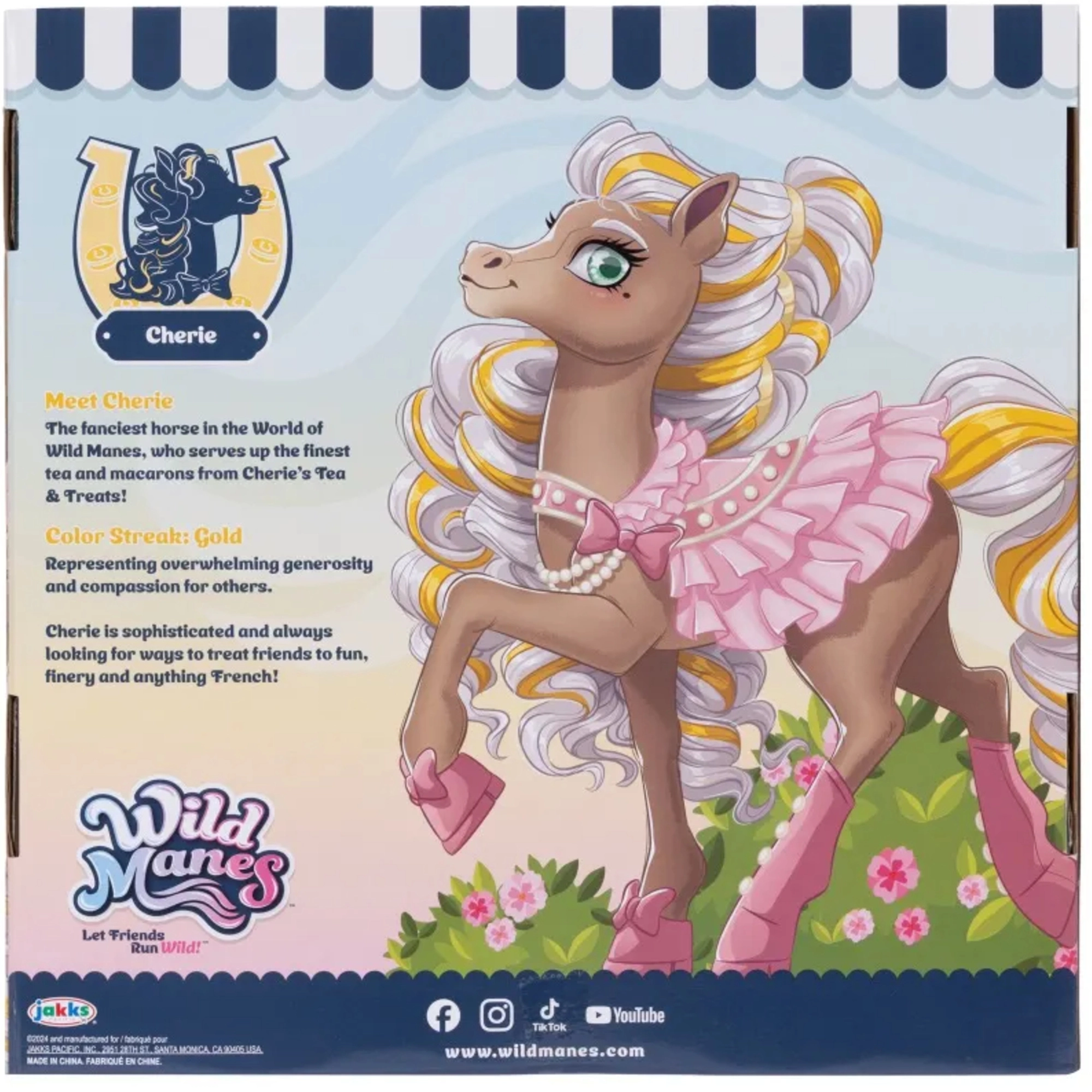 Figurka Cherie v růžové sukýnce a botičkách je připravená rozjet čajovou párty. Díky pohyblivým nohám ji snadno nastavíte do různých póz a znovu vytvoříte oblíbené scény ze světa WILD MANES. Dlouhá, vlnitá hříva a ocas se zlatými proužky přímo vybízí k česání a stylování.