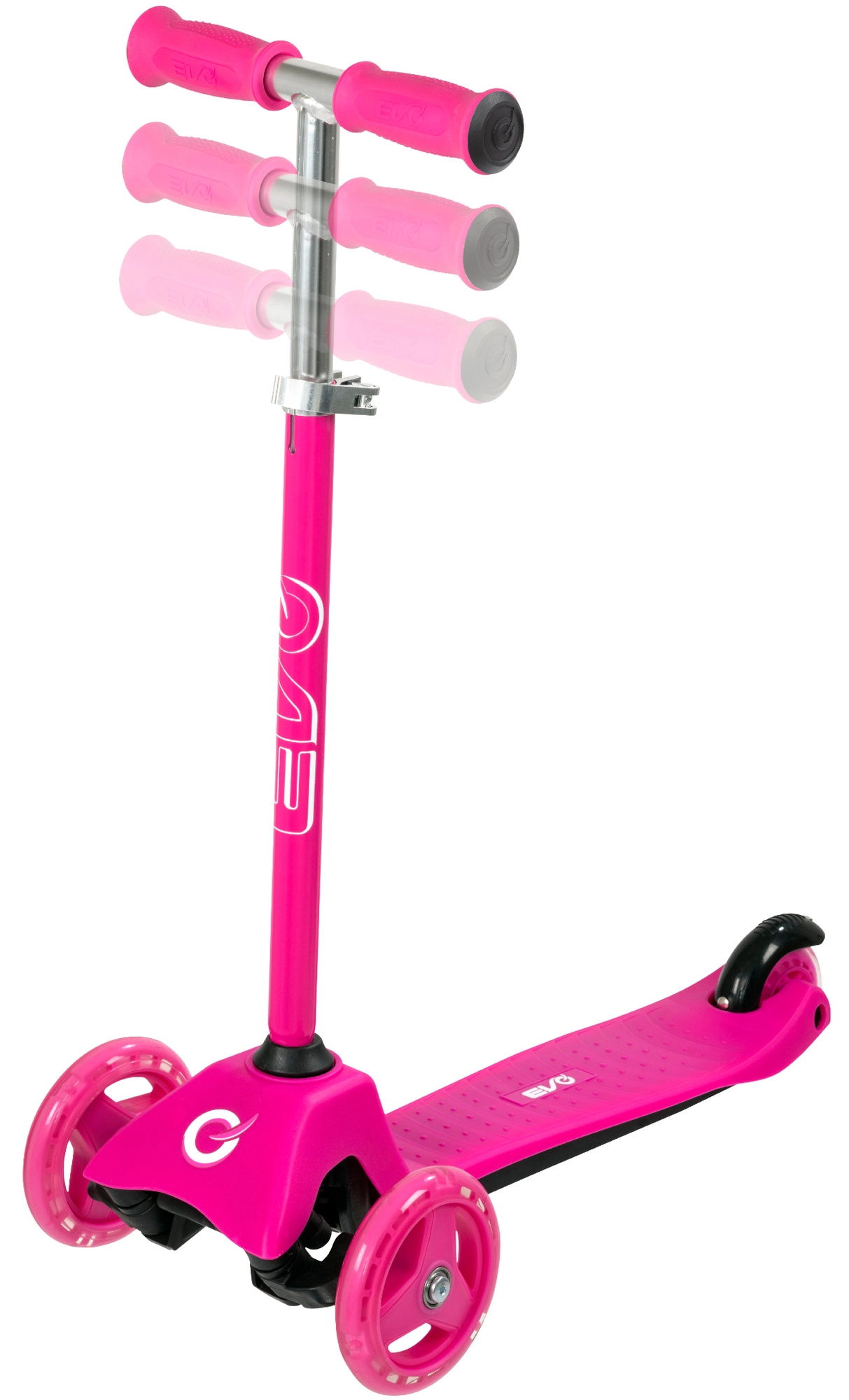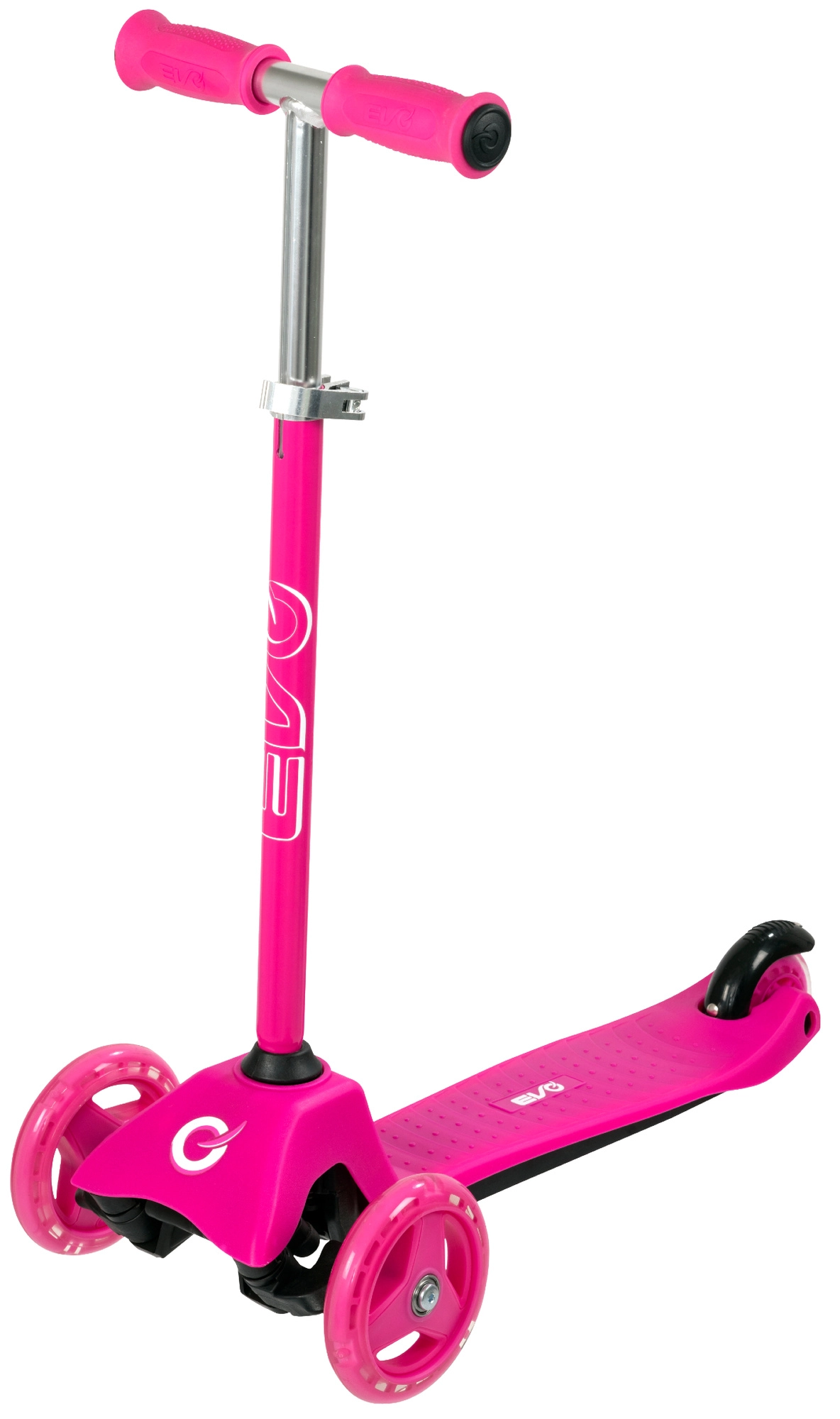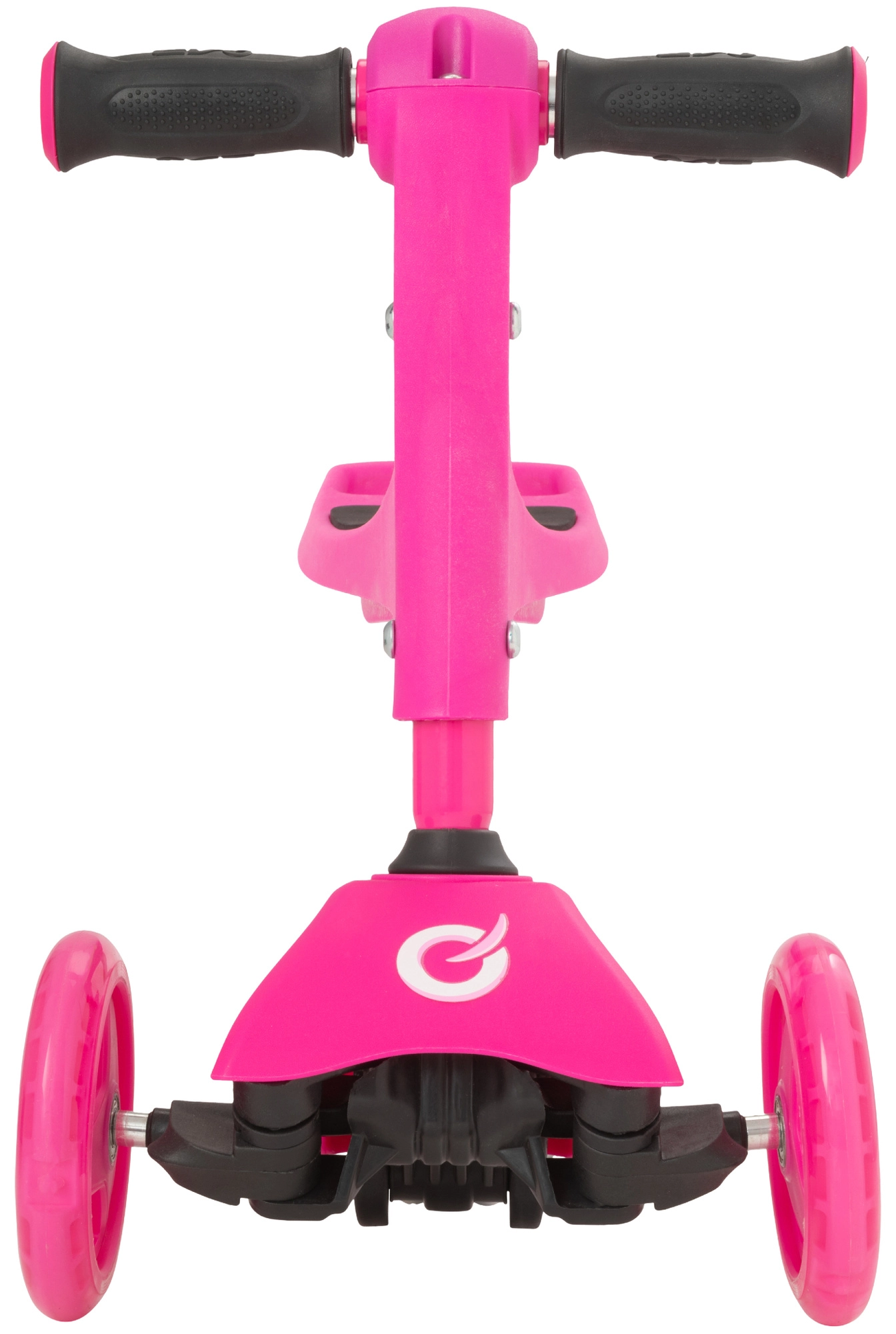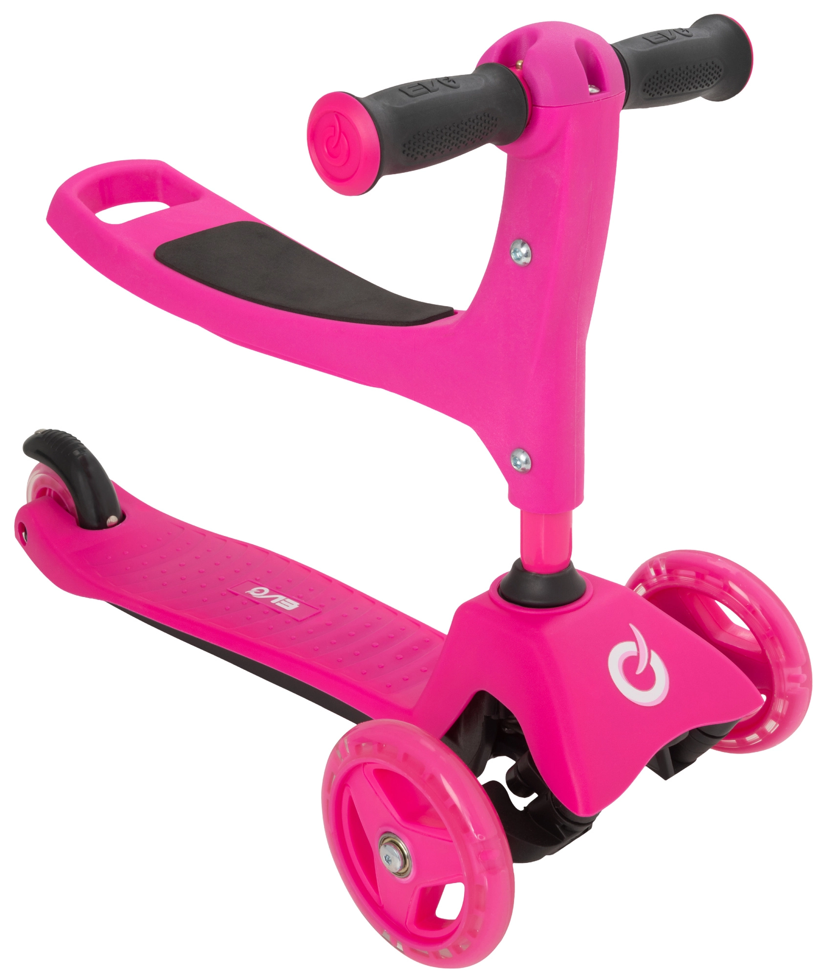 Růžová dětská koloběžka 2v1 EVO roste s vaším dítětem: během chvilky ji proměníte z jezdítka se sedátkem na stabilní tříkolku. Díky dvěma předním kolům, nízkému nášlapu a řízení náklonem nabízí výbornou stabilitu, snadné ovládání a bezpečné brzdění zadním blatníkem. Výškově nastavitelná řídítka, tichá kolečka s ložisky ABEC-5 a protiskluzová deska zajistí pohodlnou a zábavnou jízdu pro nejmenší i starší děti.